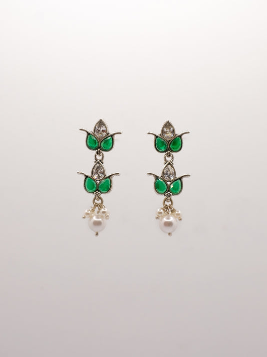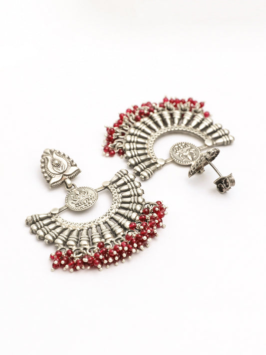 Lotus And Shell Handcrafted Enamel Earrings With Red Glass Hangings - UMANG