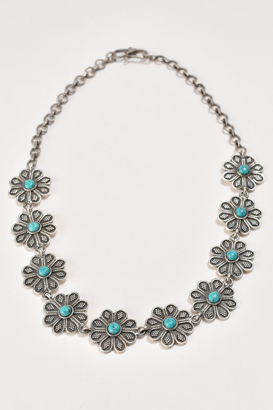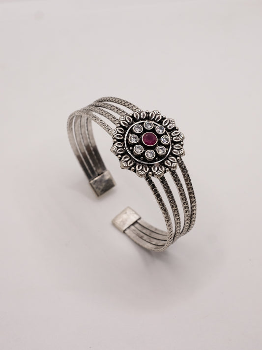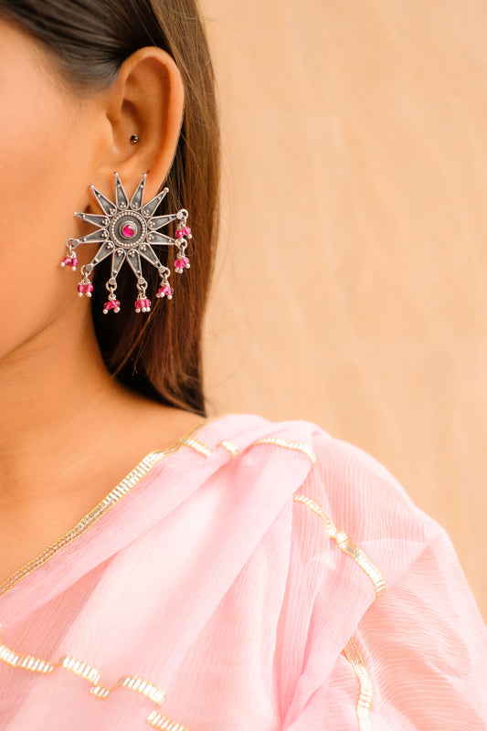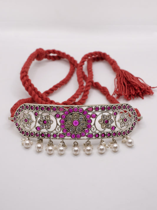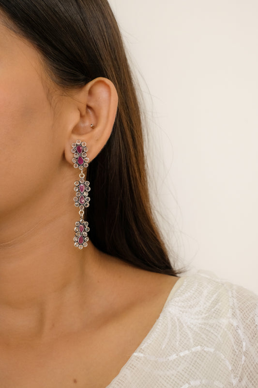Crystal Ruby Floral Necklace With Thread And Earrings