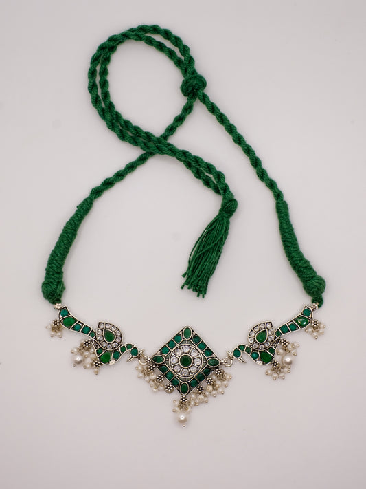 Peacock Moon Studded With Red Stone Earrings And Necklace