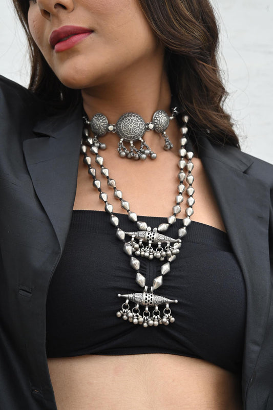 Silver Dholak One Line Necklace - DORA