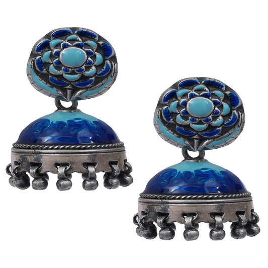 Blue Handcrafted Enamel Jhumkis- UMANG
