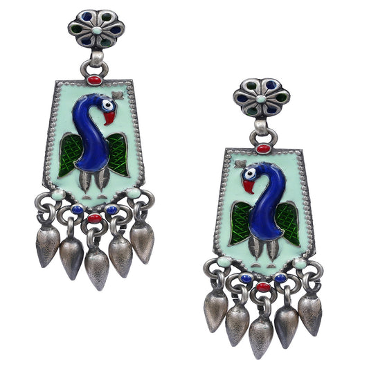 Peacock Handcrafted Enamel Earring With Hangings - UMANG