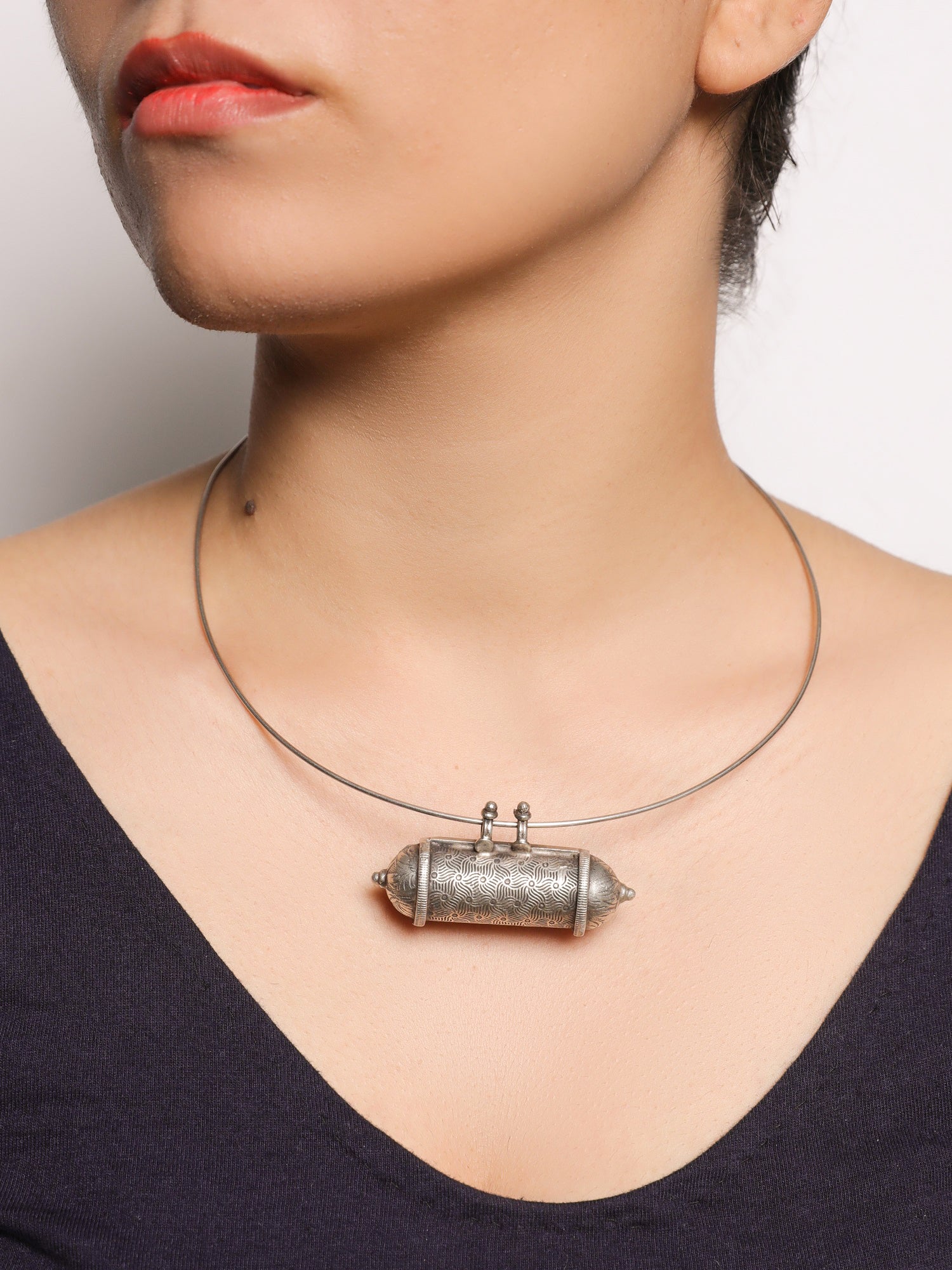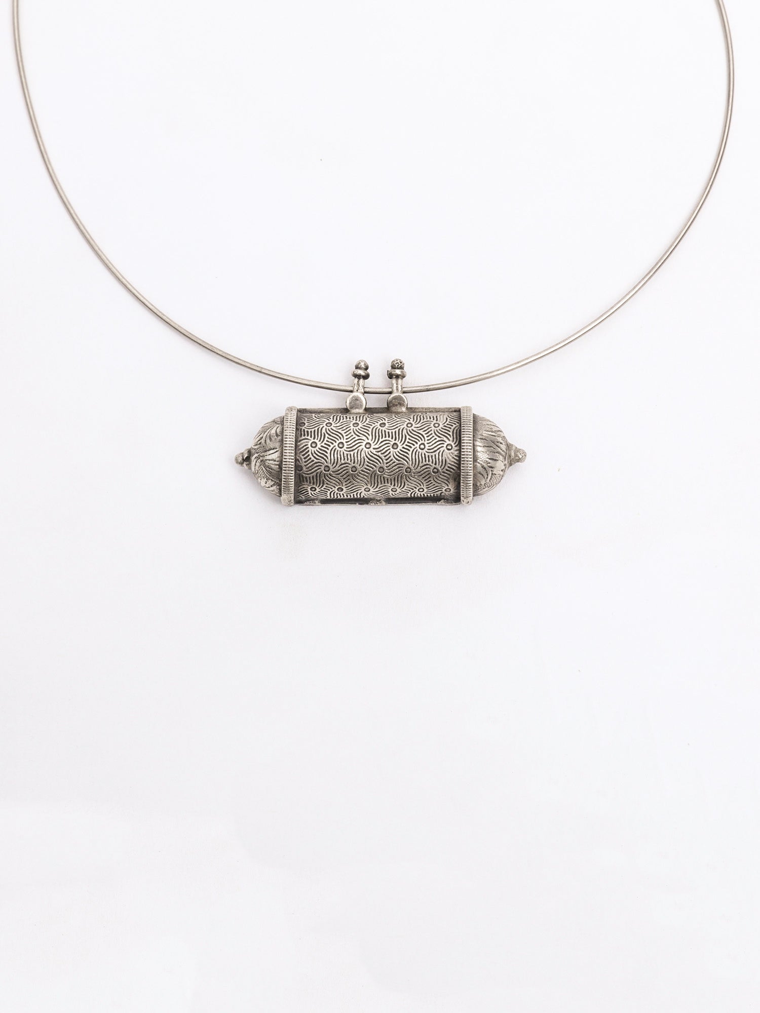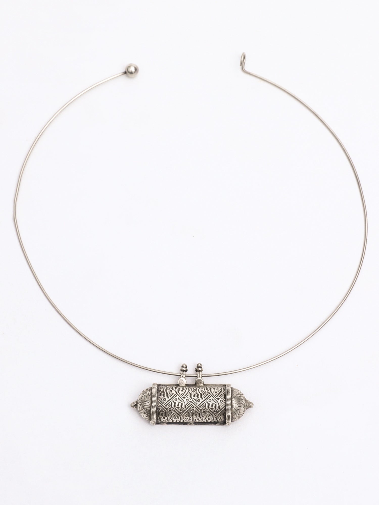 Hasli necklace with textured tabiz. Necklace can be opened by unscrewing the ball at the back to remove the pendant and to use it with different pendants.