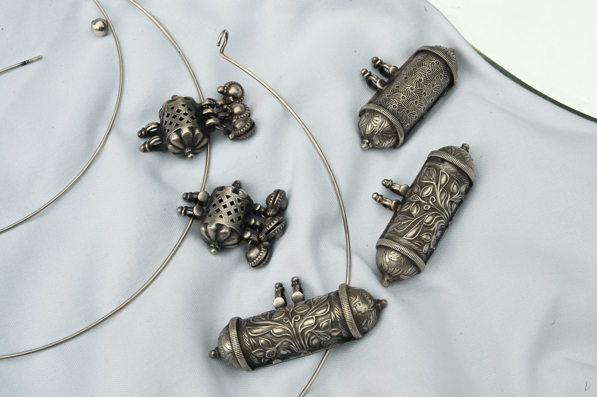 Exposed to the atmosphere, all silver is prone to oxidation and consequent tarnishing. Gentle rubbing with a silver cloth will restore the original brilliance. Do not use liquid cleaners for carved silver jewellery as it dries into the engraving.