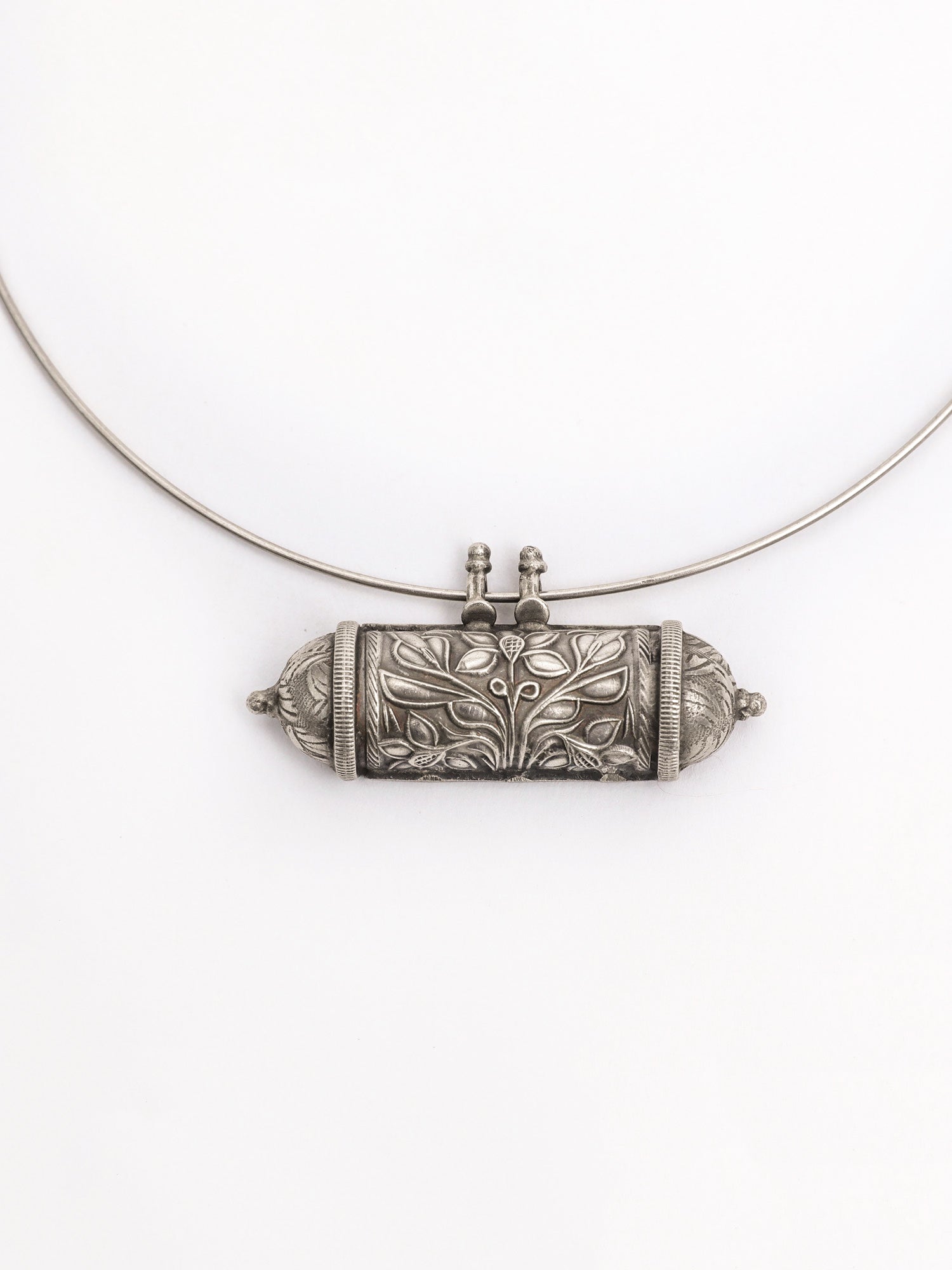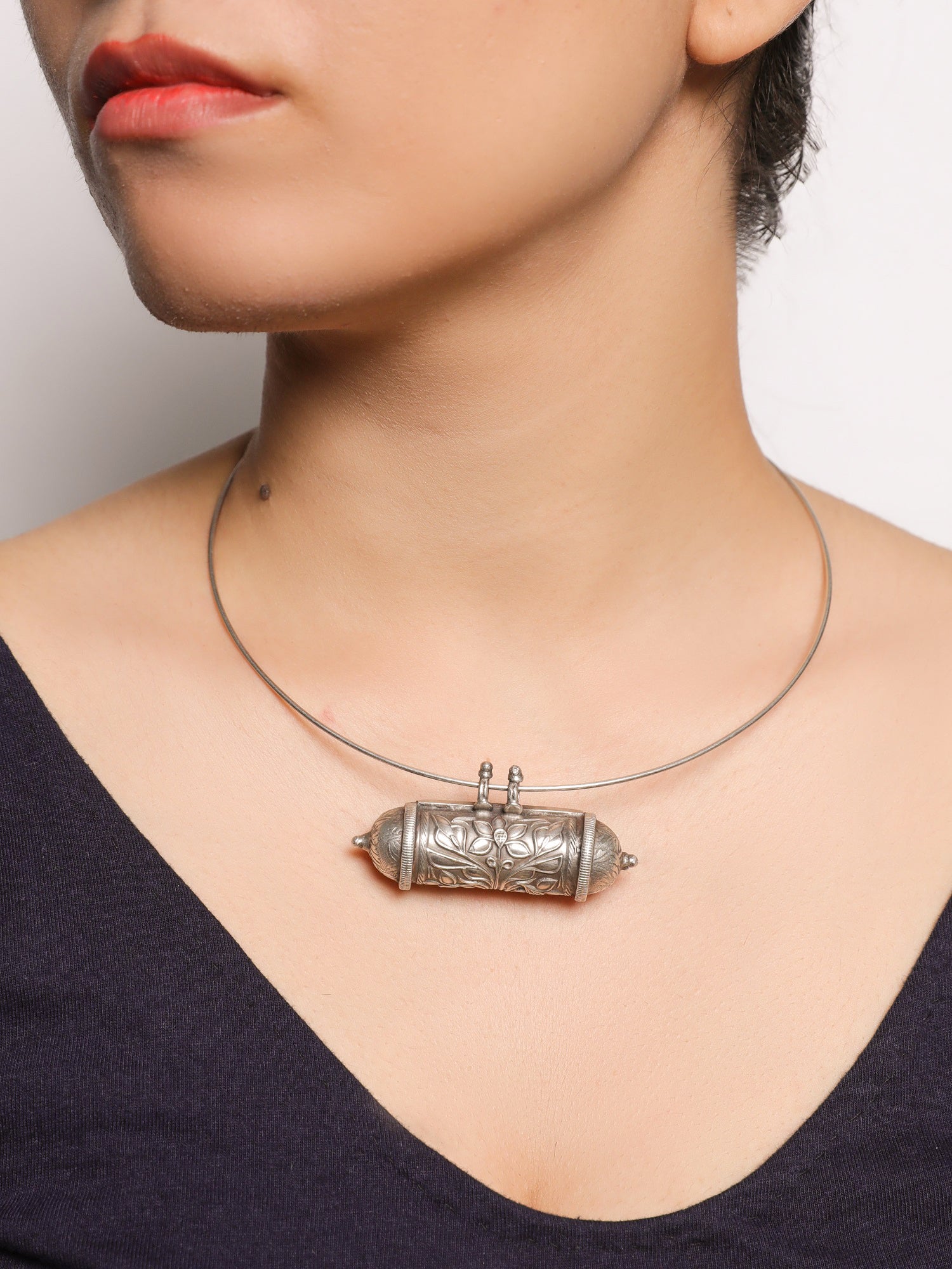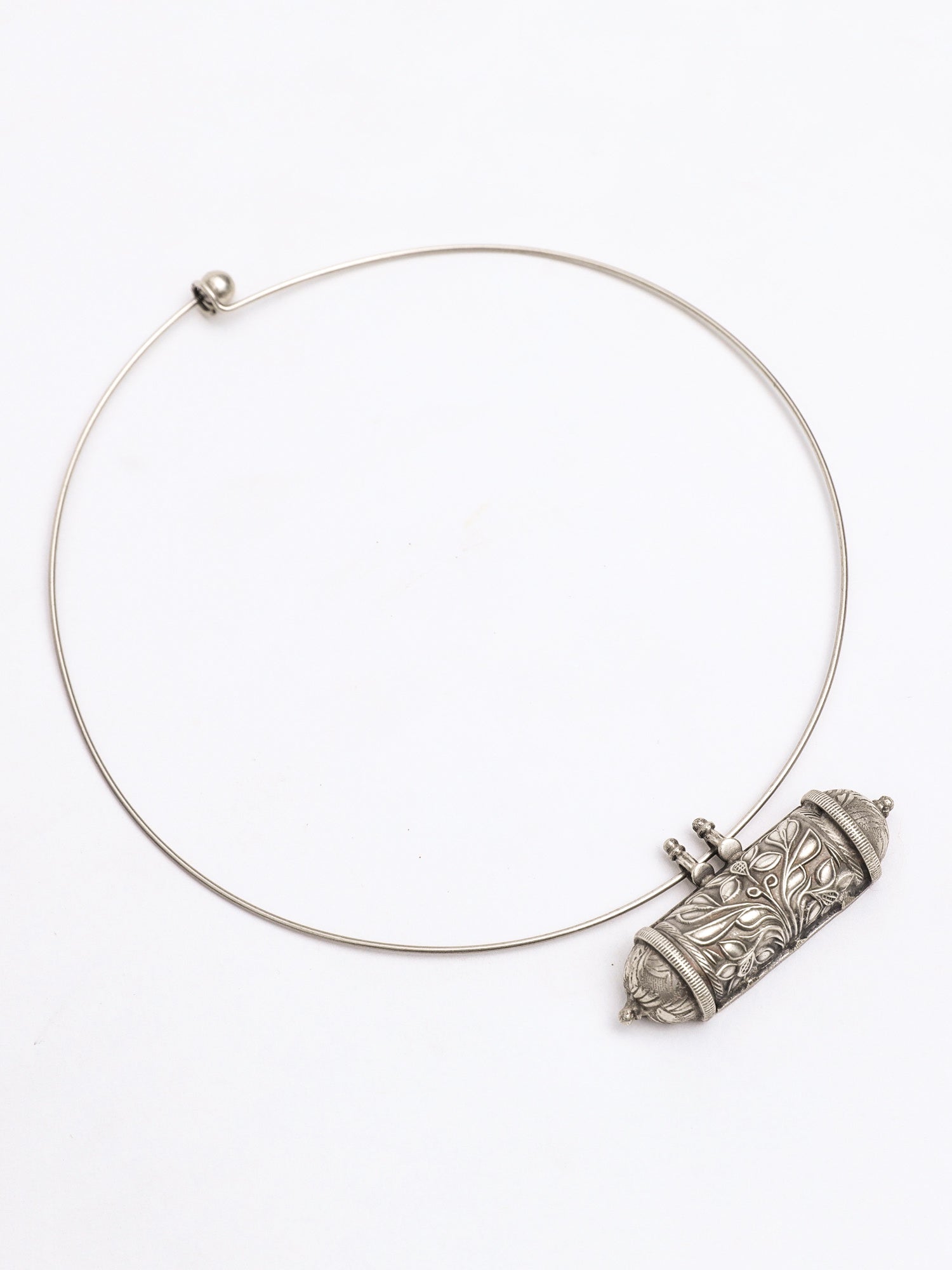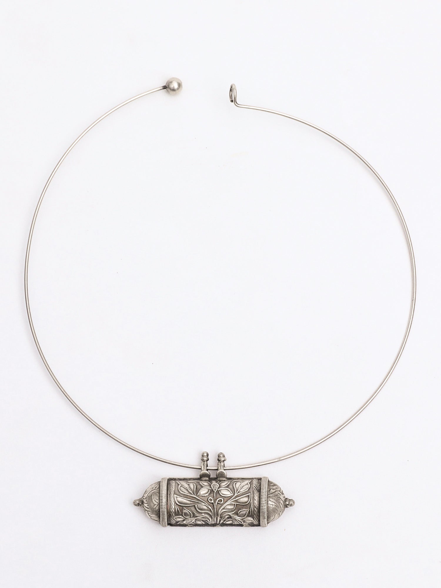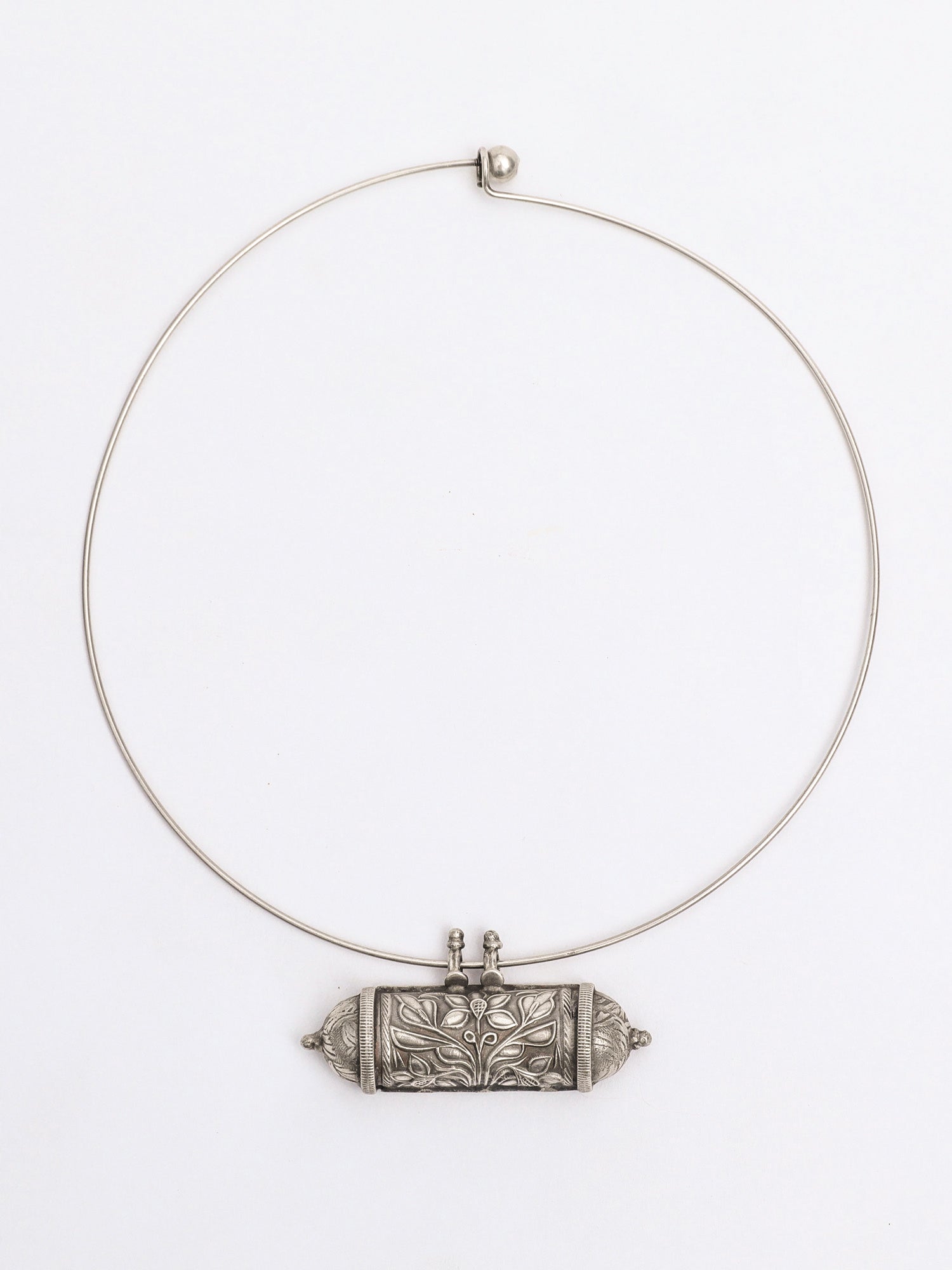 Hasli necklace with Flower embossed tabiz. Necklace can be opened by unscrewing the ball at the back to remove the pendant and to use it with different pendants.