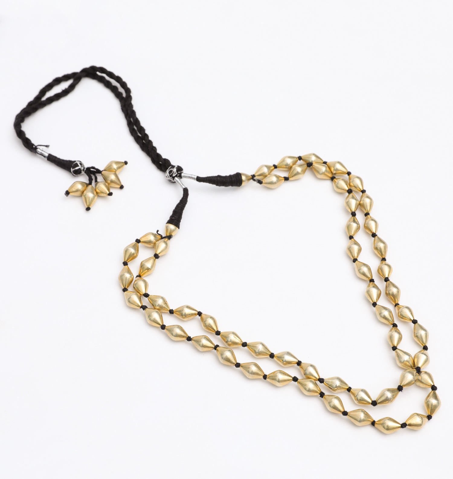 Silver Dholak threaded goldtone Beads necklace. Length can be adjusted with adjustable tread loop. Handcrafted sterling silver beads set in the thread.