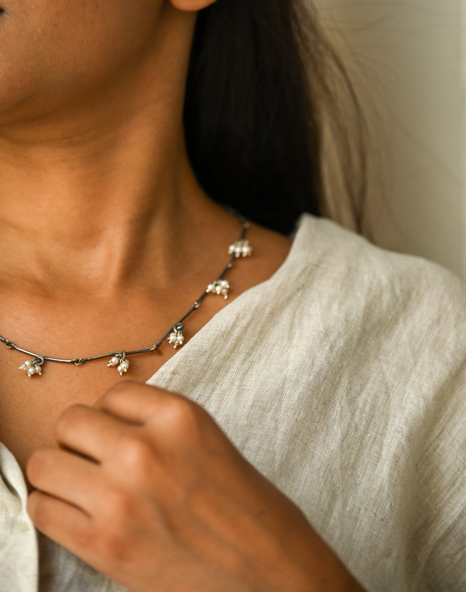 Exposed to the atmosphere, all silver is prone to oxidation and consequent tarnishing. Gentle rubbing with a silver cloth will restore the original brilliance. Do not use liquid cleaners for carved silver jewellery as it dries into the engraving.