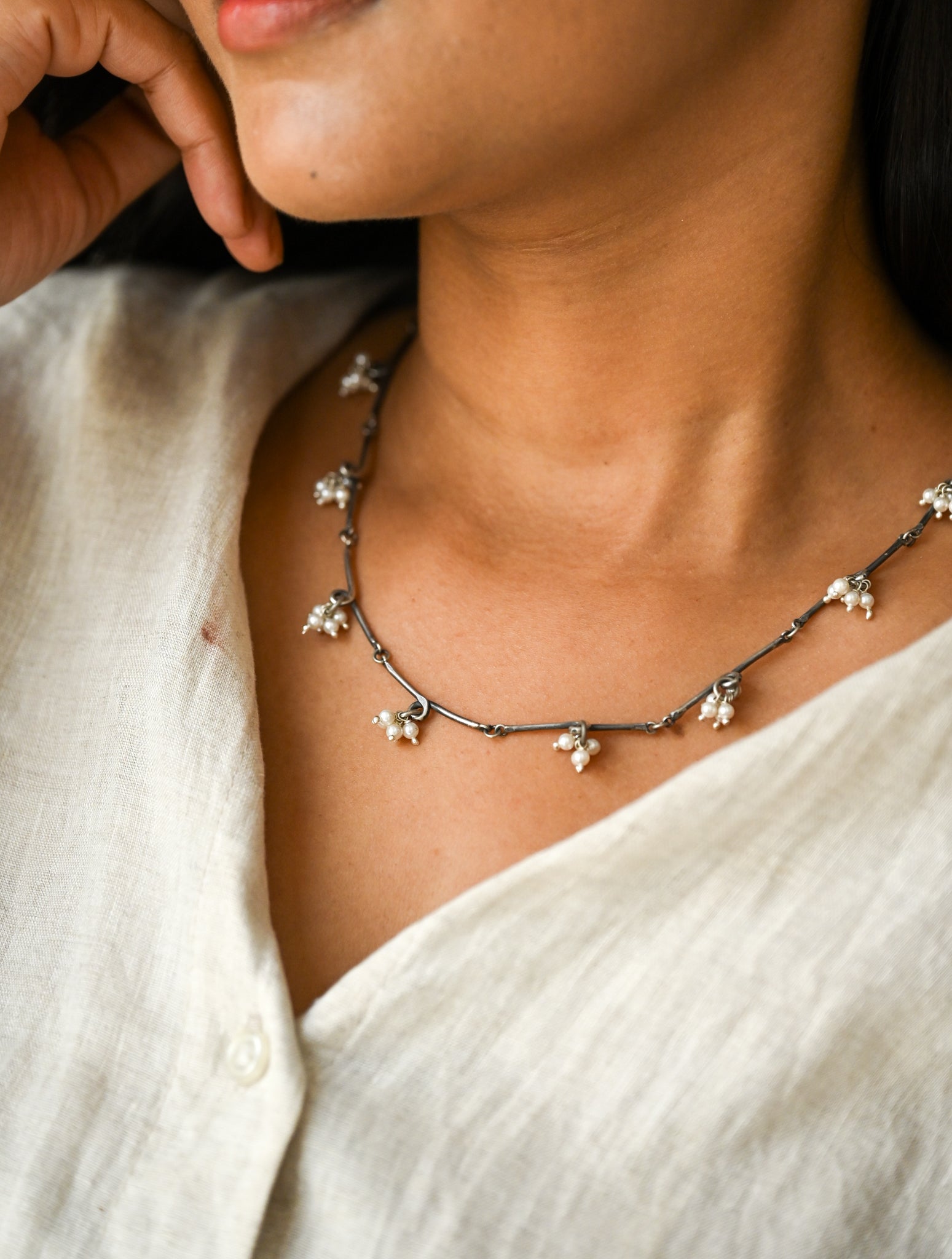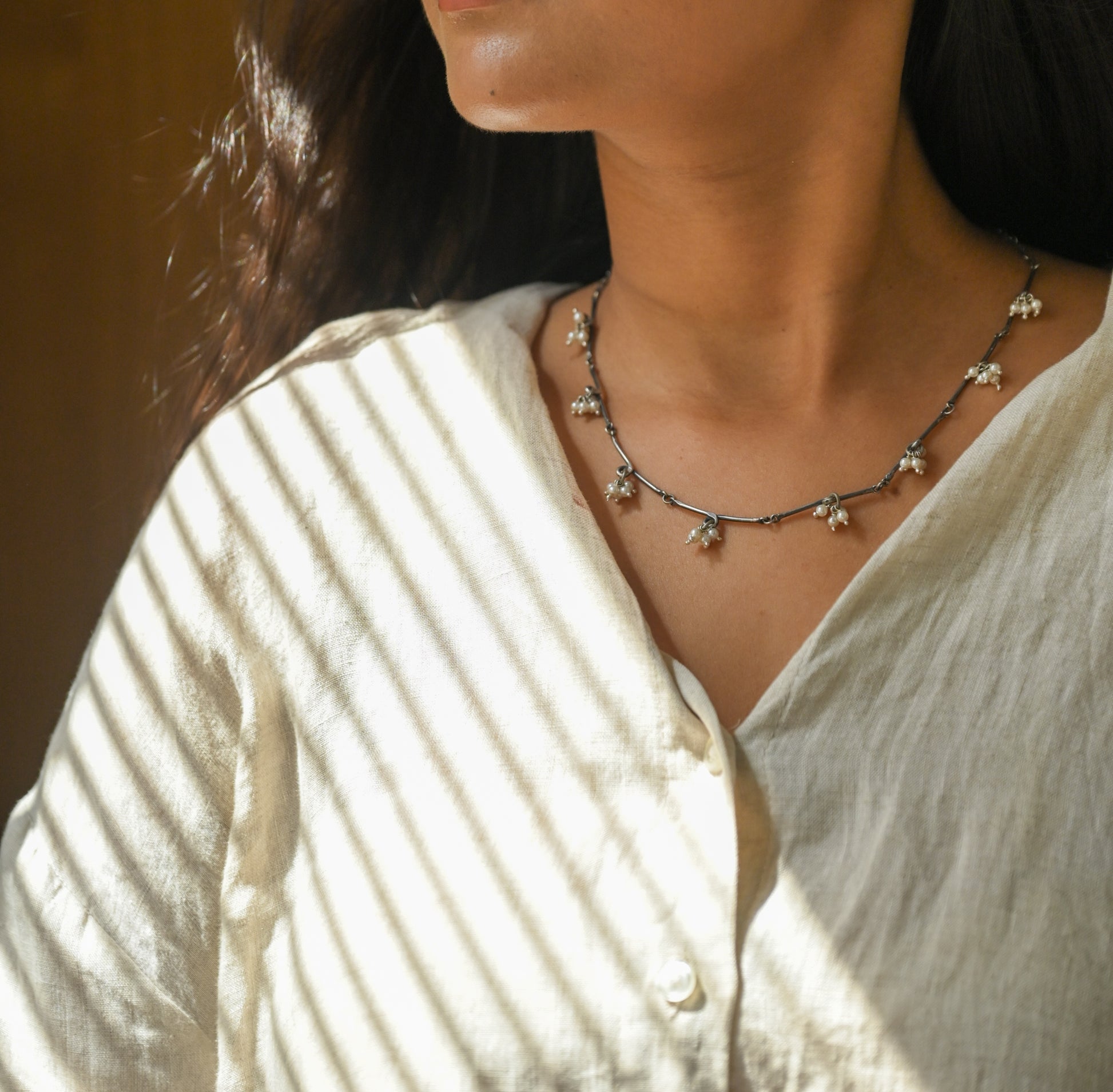 Versatile small diamond necklace to elevate your Indian as well as Western look. Adjustable size.