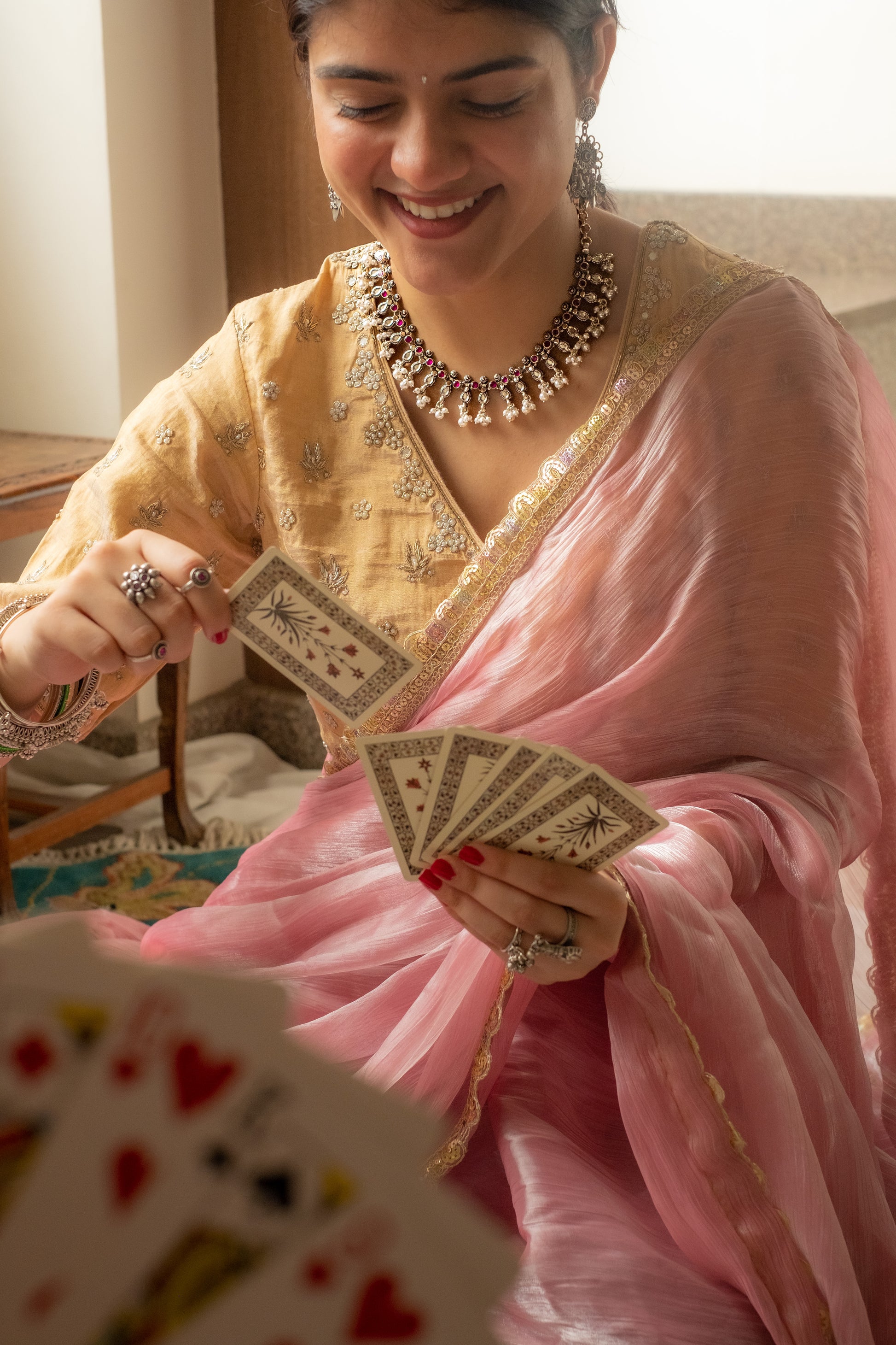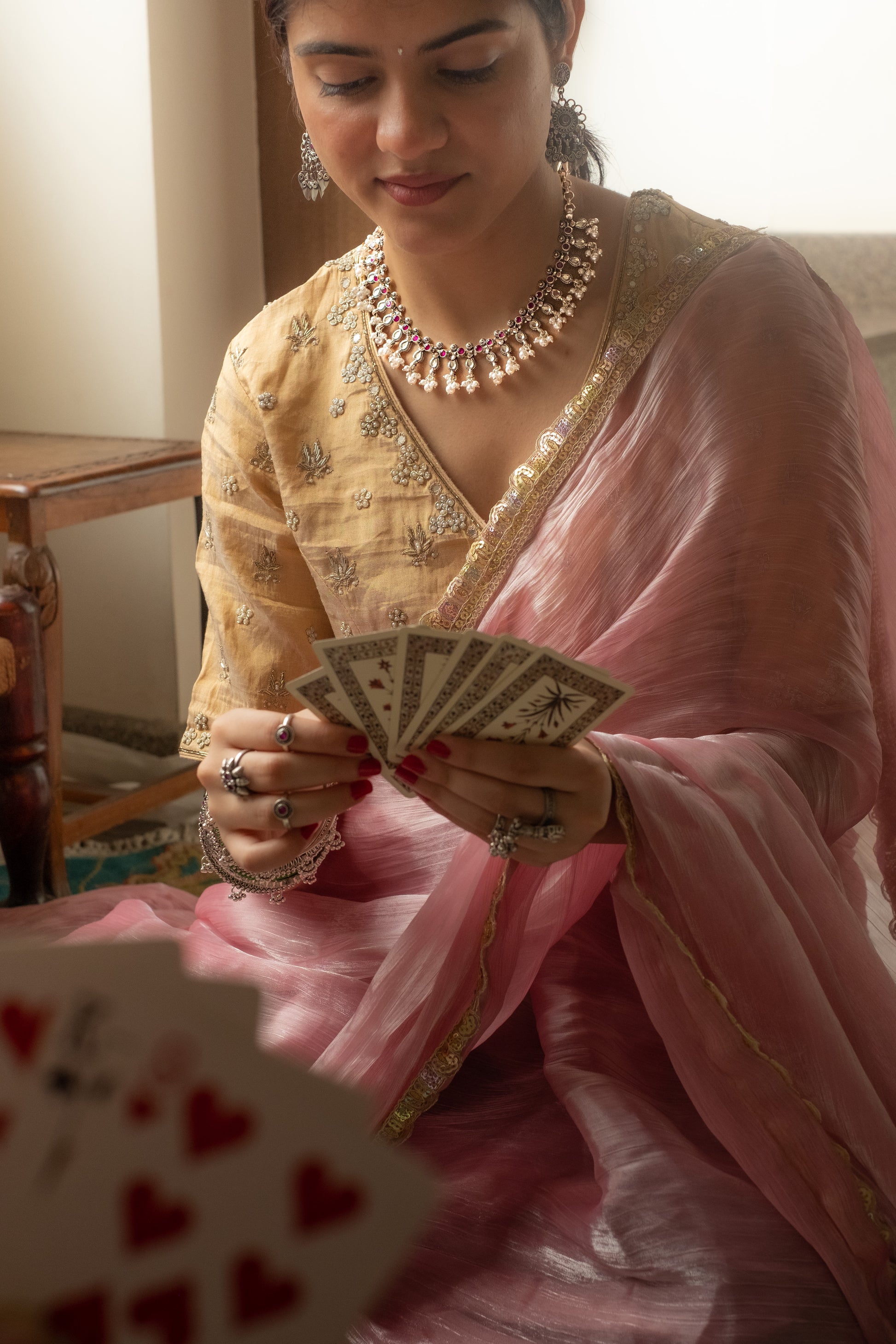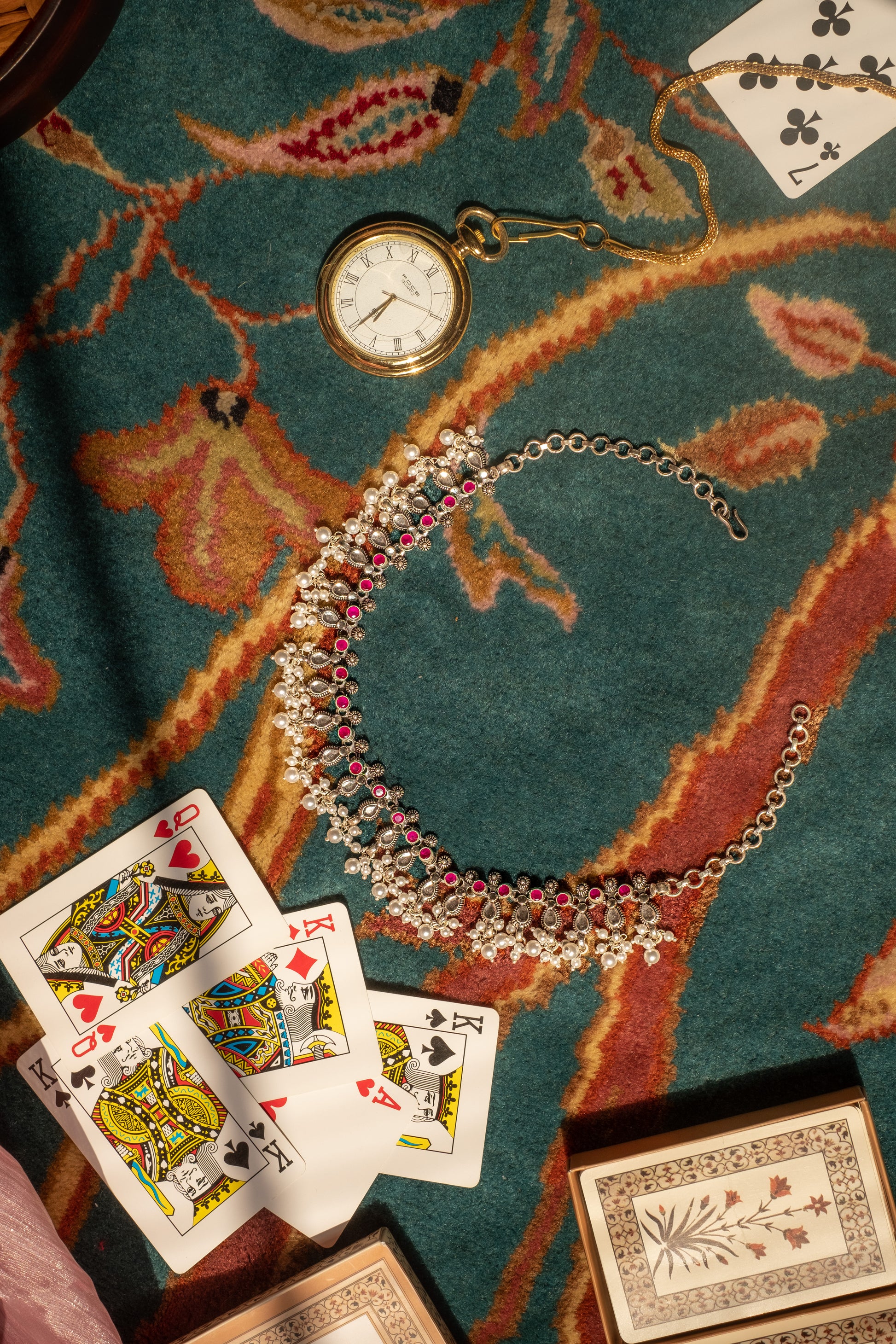 Beautifully handcrafted Crystal Red Stone Pearl Hanging Necklace to elevate any festive look