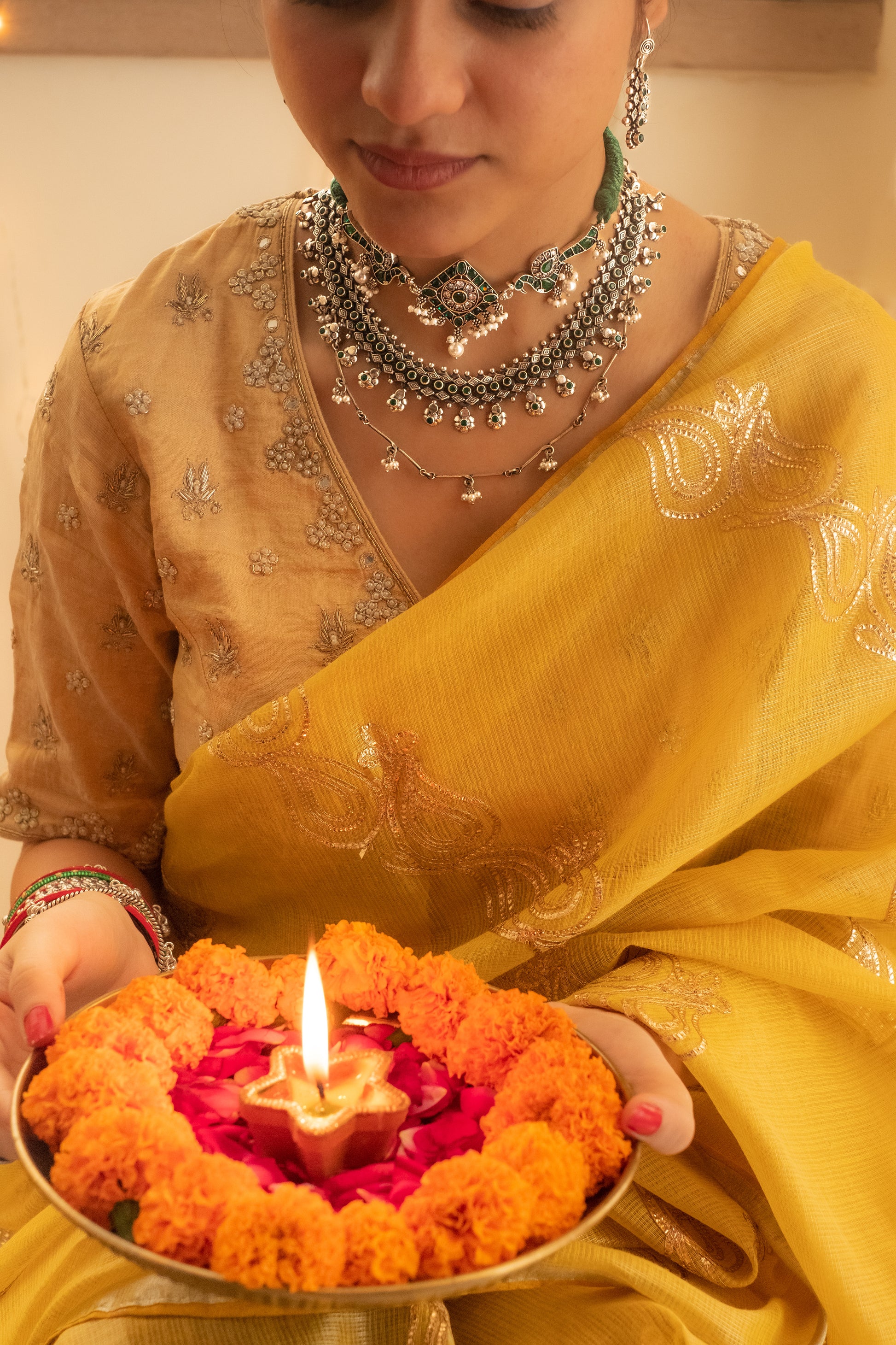 Exposed to the atmosphere, all silver is prone to oxidation and consequent tarnishing. Gentle rubbing with a silver cloth will restore the original brilliance. Do not use liquid cleaners for carved silver jewellery as it dries into the engraving.
