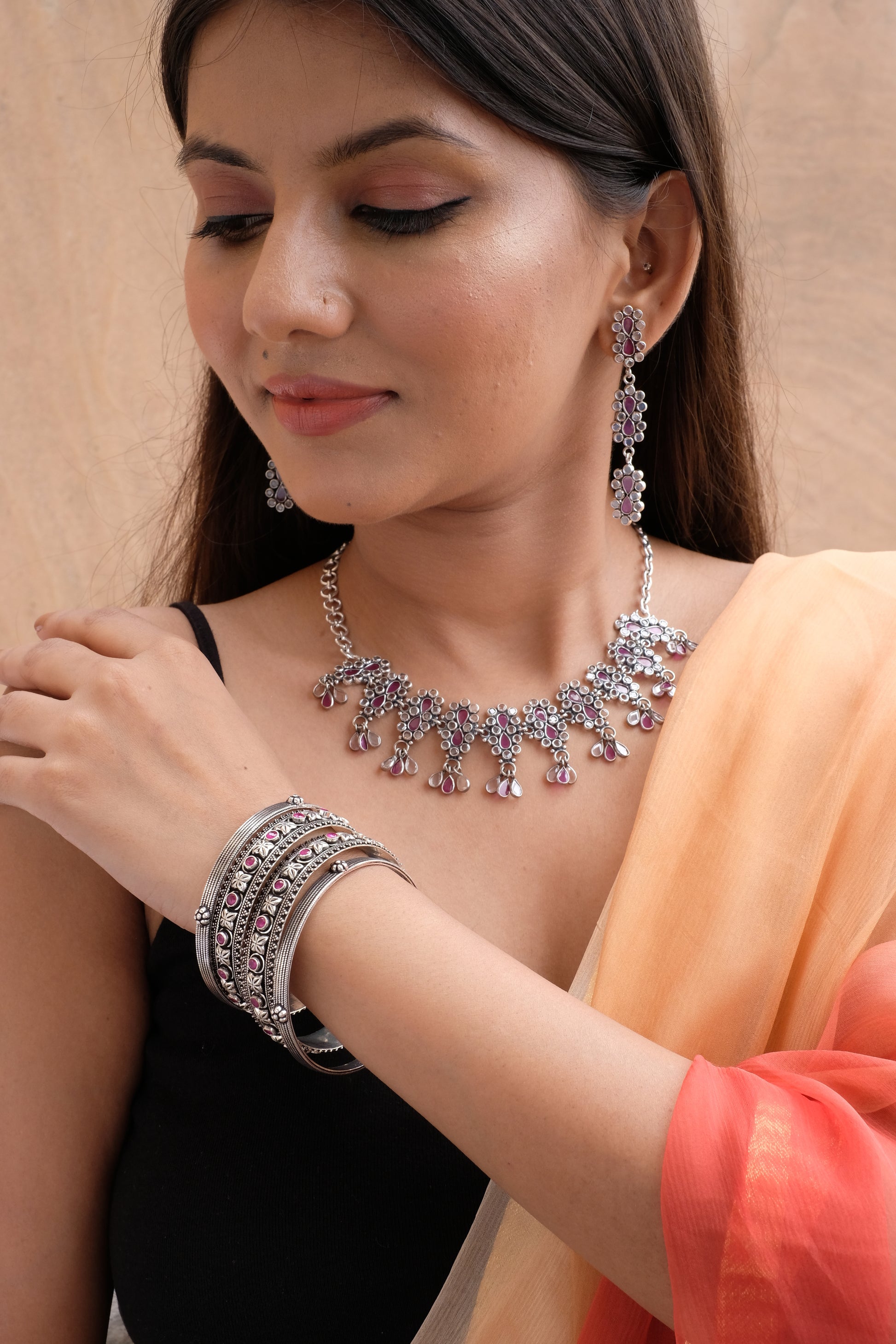 Exposed to the atmosphere, all silver is prone to oxidation and consequent tarnishing. Gentle rubbing with a silver cloth will restore the original brilliance. Do not use liquid cleaners for carved silver jewellery as it dries into the engraving.