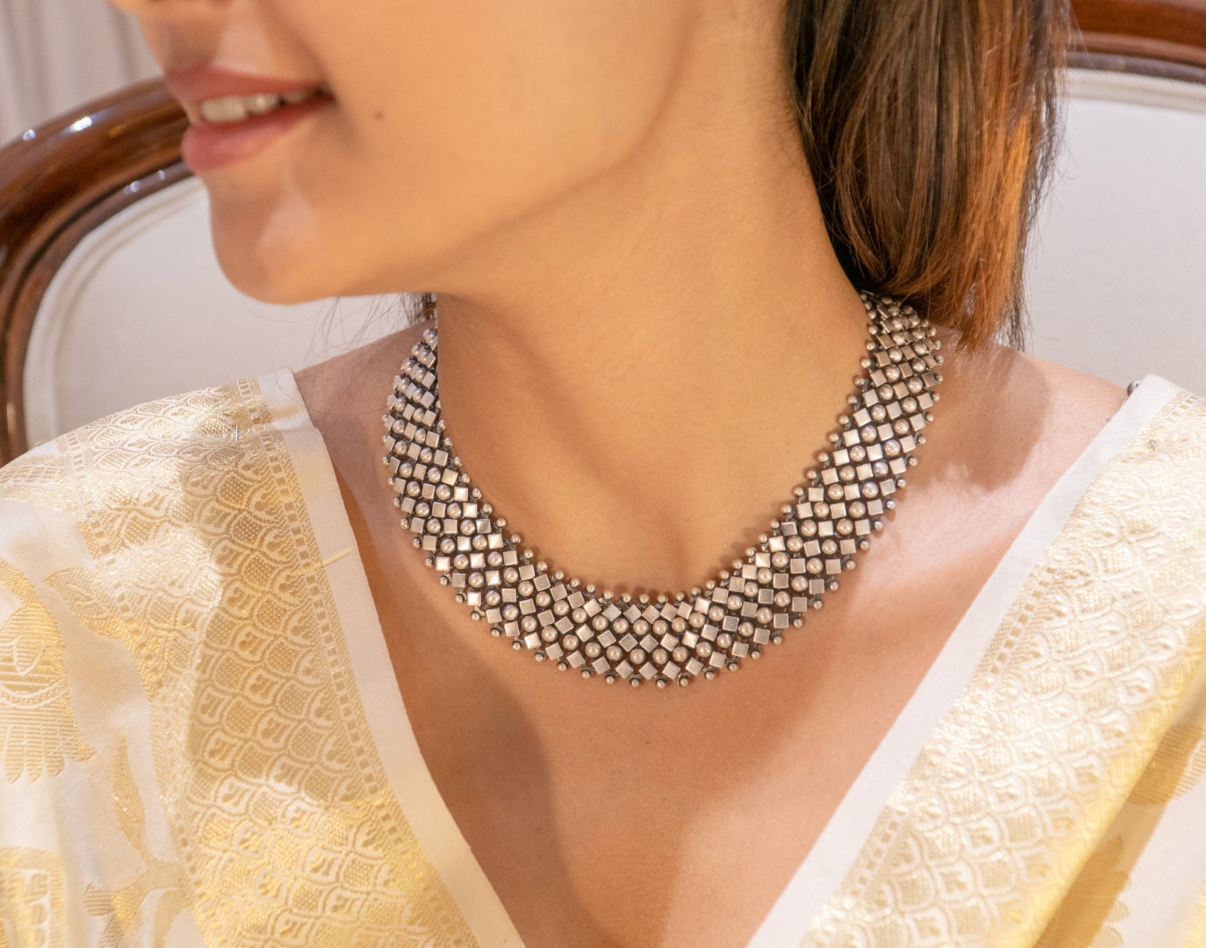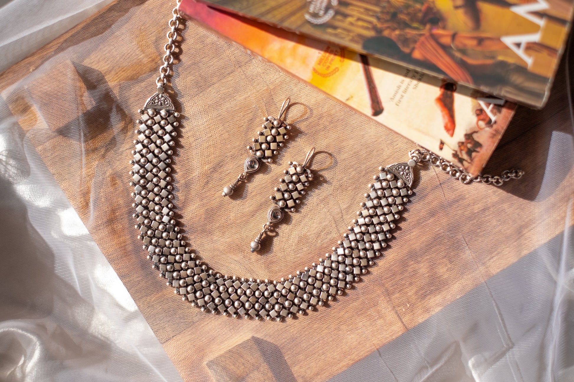 Exposed to the atmosphere, all silver is prone to oxidation and consequent tarnishing. Gentle rubbing with a silver cloth will restore the original brilliance. Do not use liquid cleaners for carved silver jewellery as it dries into the engraving.