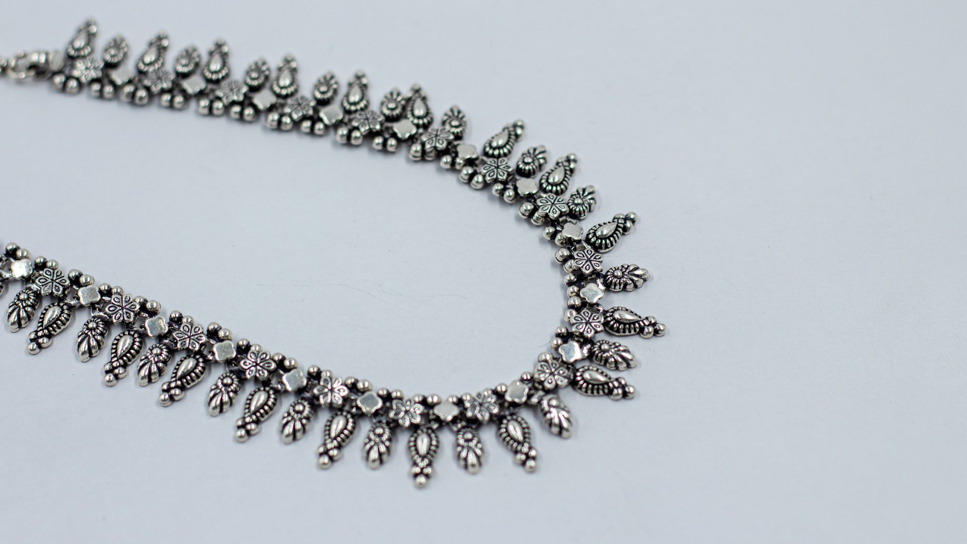 Exposed to the atmosphere, all silver is prone to oxidation and consequent tarnishing. Gentle rubbing with a silver cloth will restore the original brilliance. Do not use liquid cleaners for carved silver jewelry as it dries into the engraving.