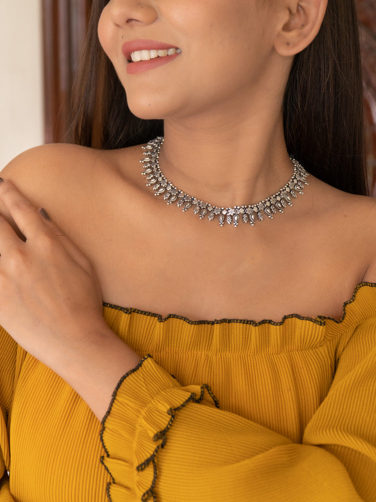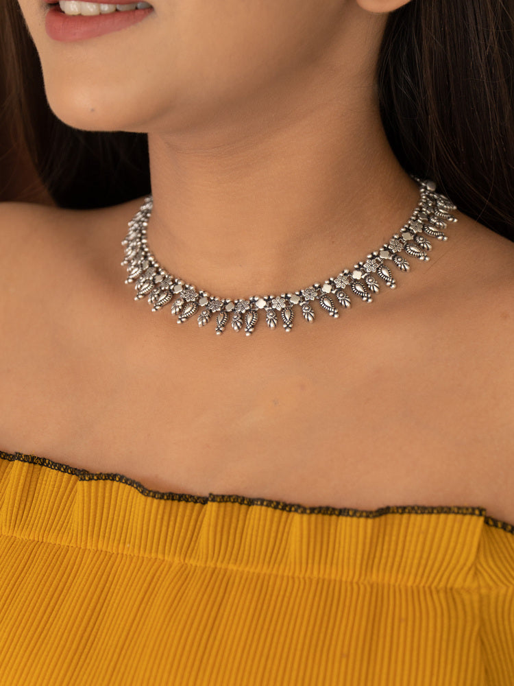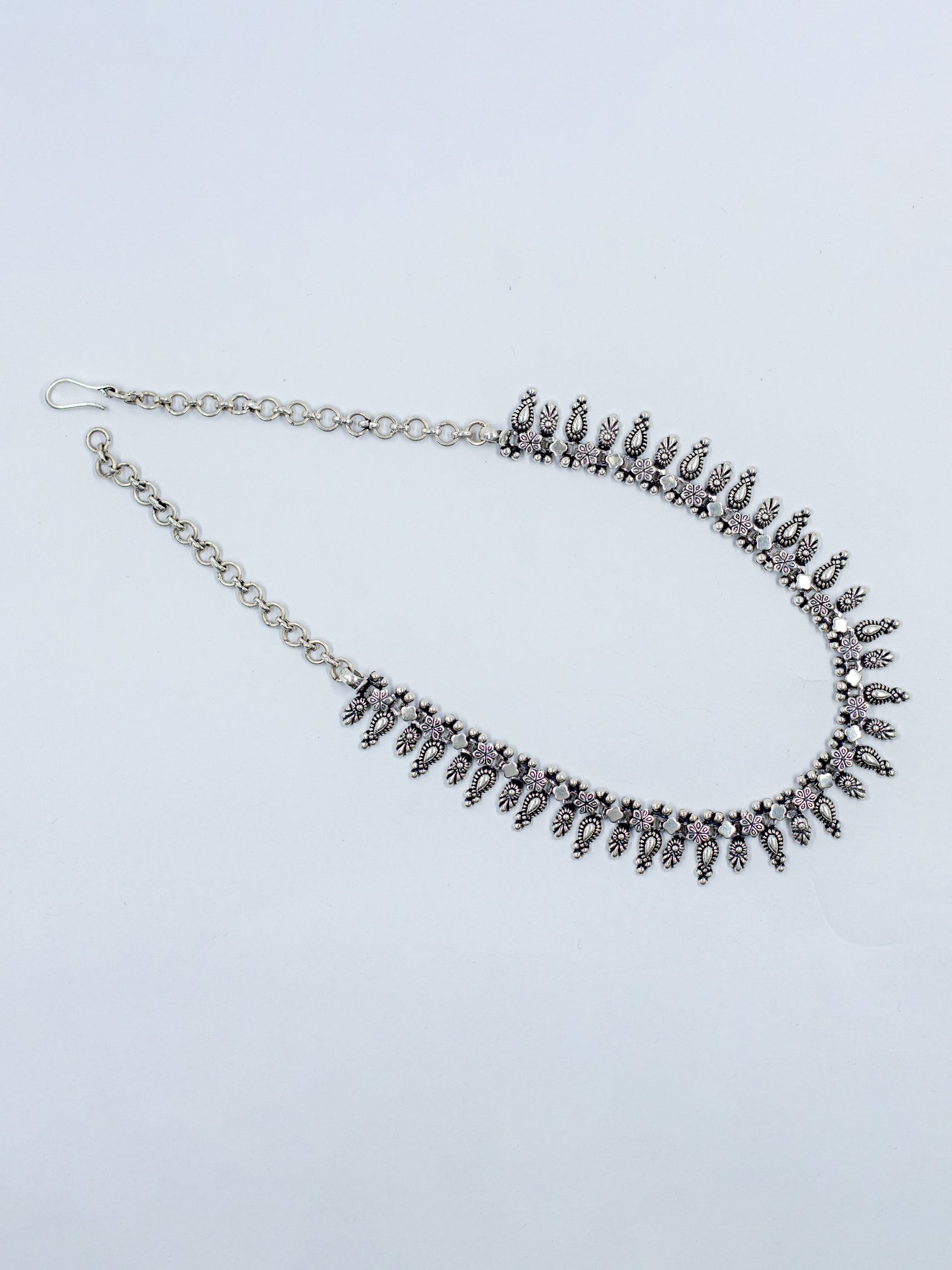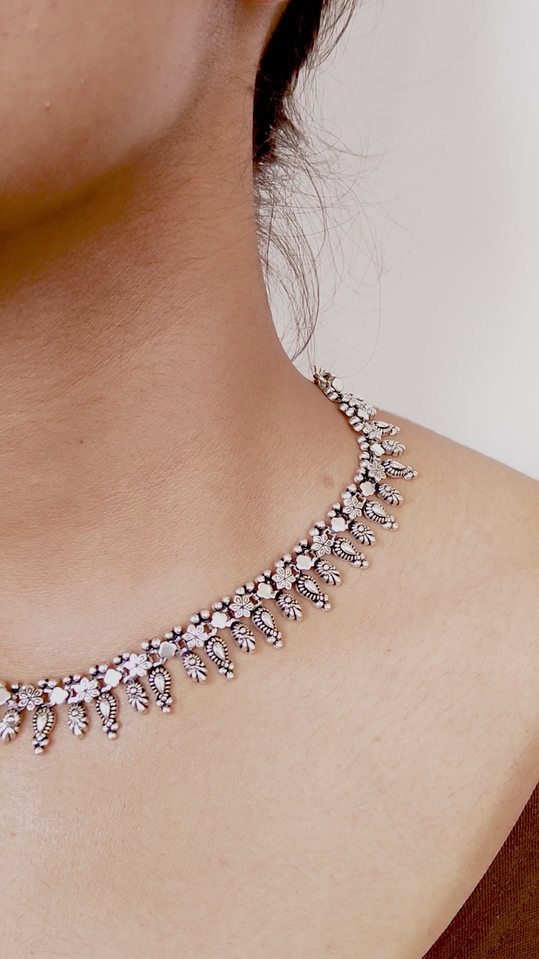 Simple and elegant flower dual motif necklace. Adjustable size.
