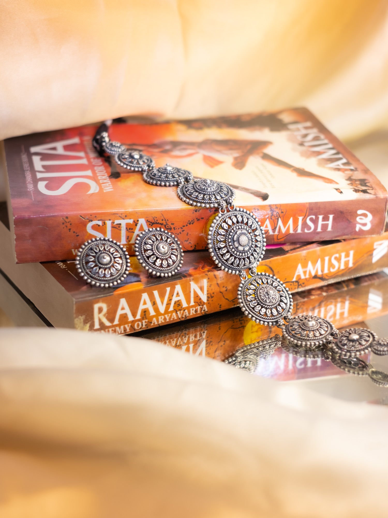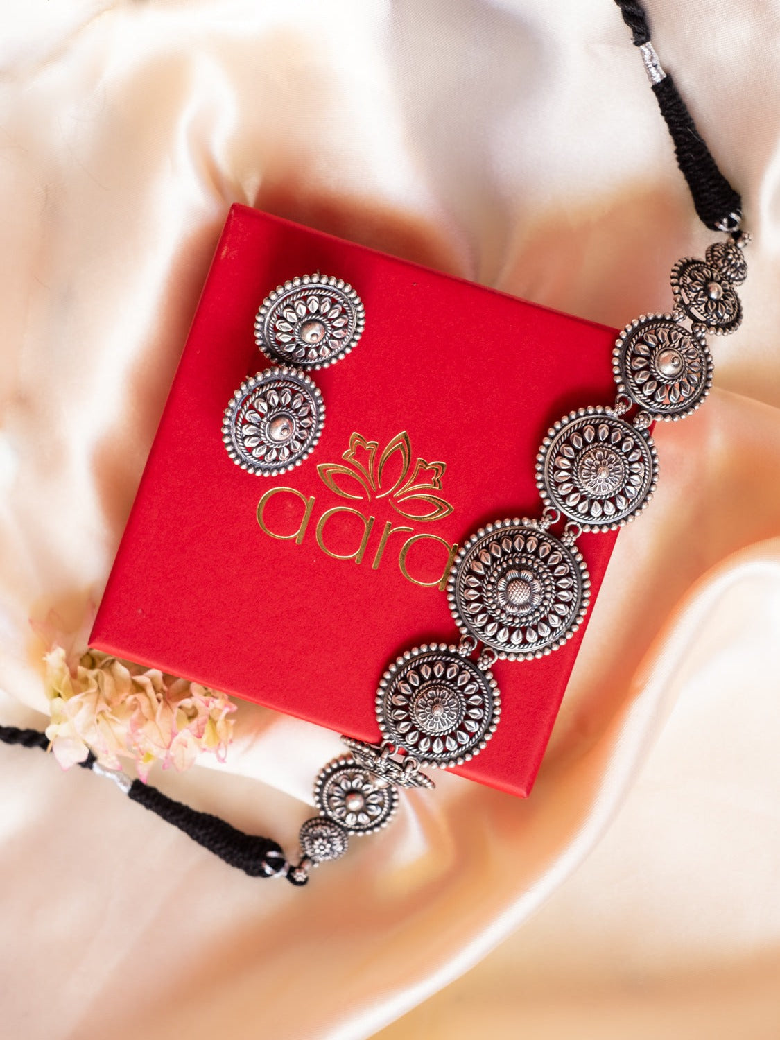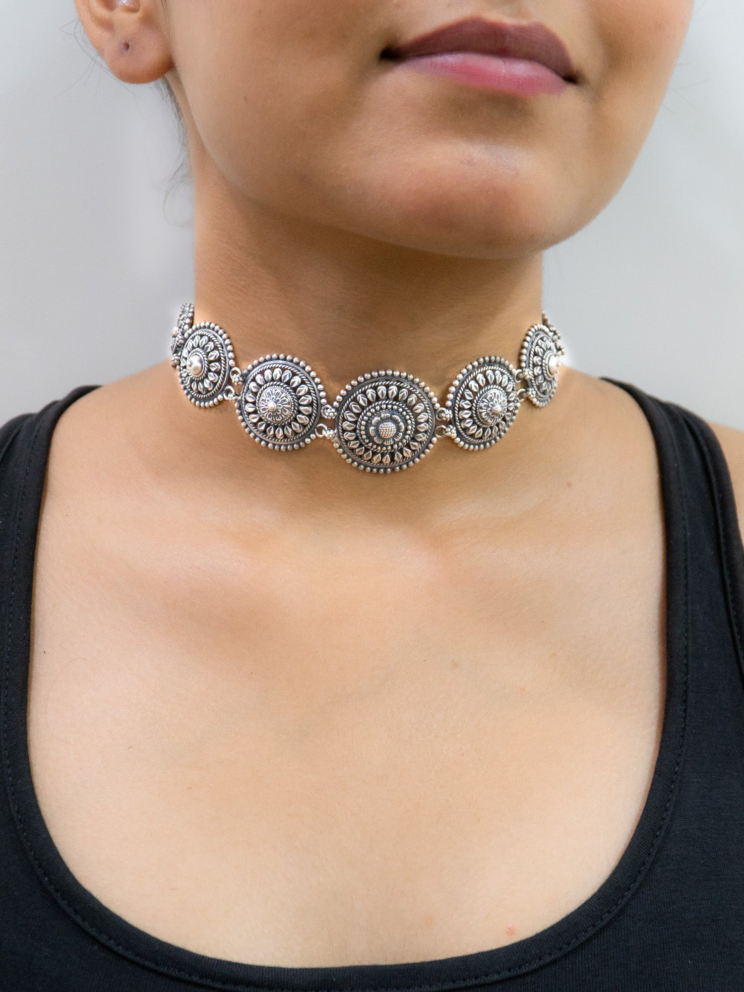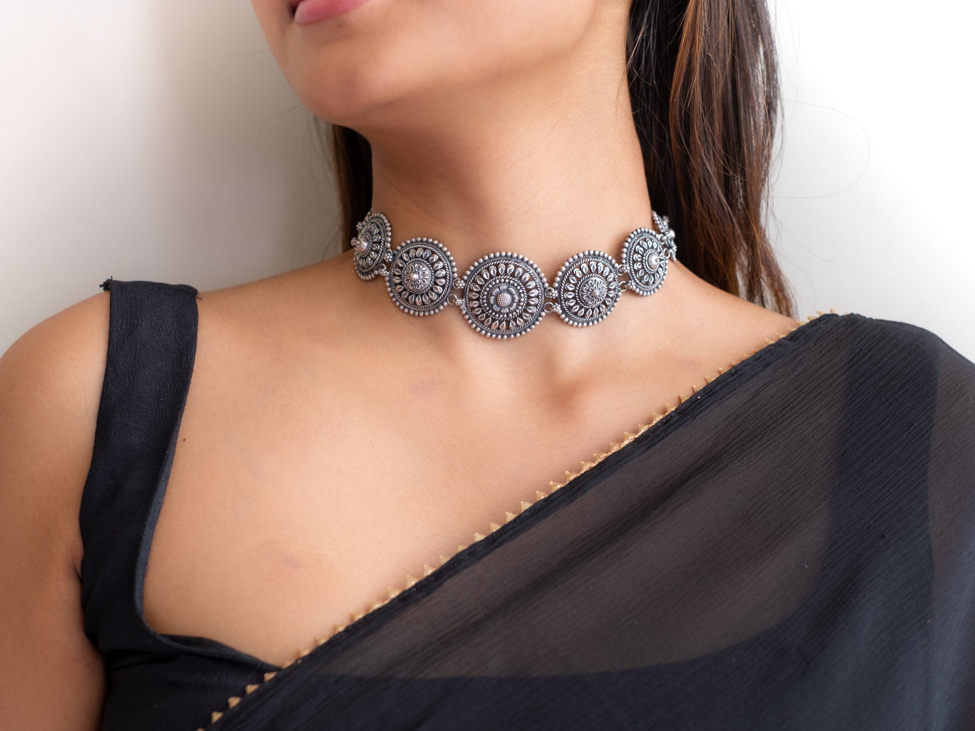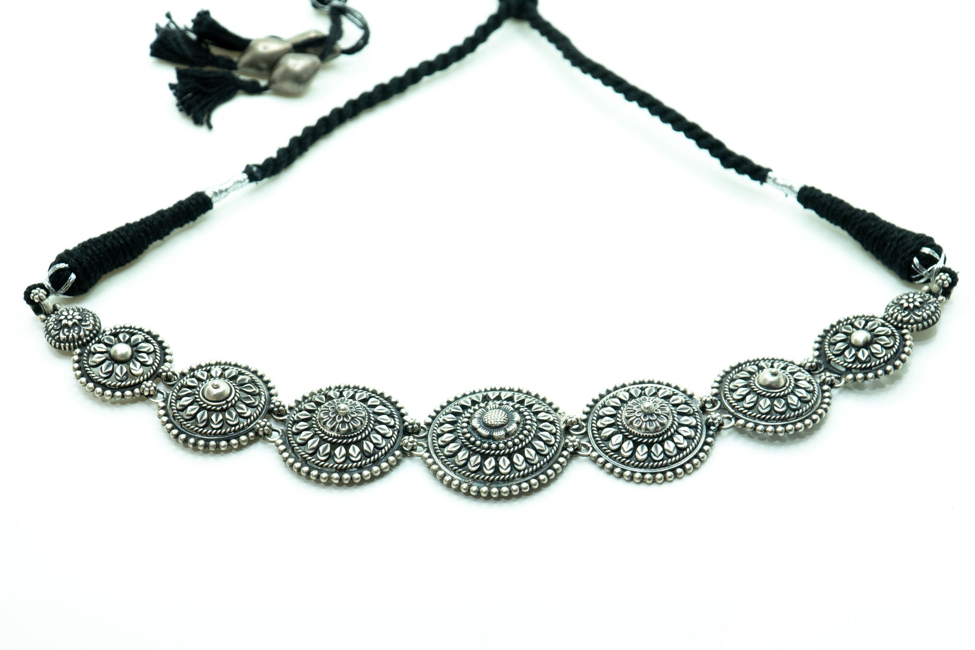 Flower Embossed Choker with granulated Border in Graduation with Black Thread.