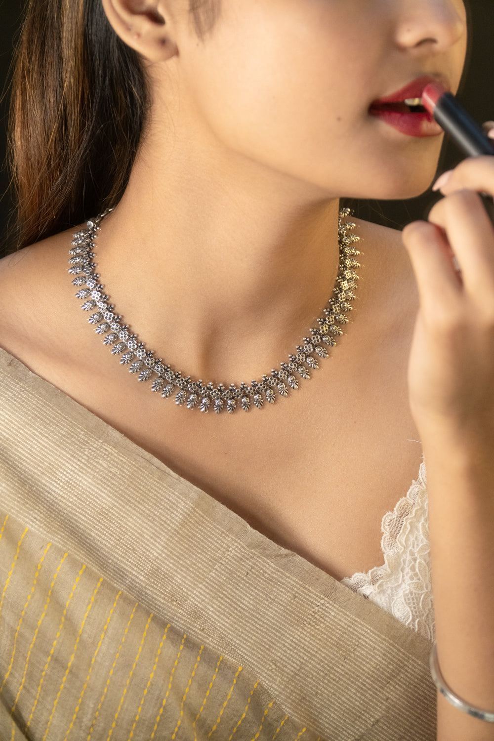 Exposed to the atmosphere, all silver is prone to oxidation and consequent tarnishing. Gentle rubbing with a silver cloth will restore the original brilliance. Do not use liquid cleaners for carved silver jewellery as it dries into the engraving.