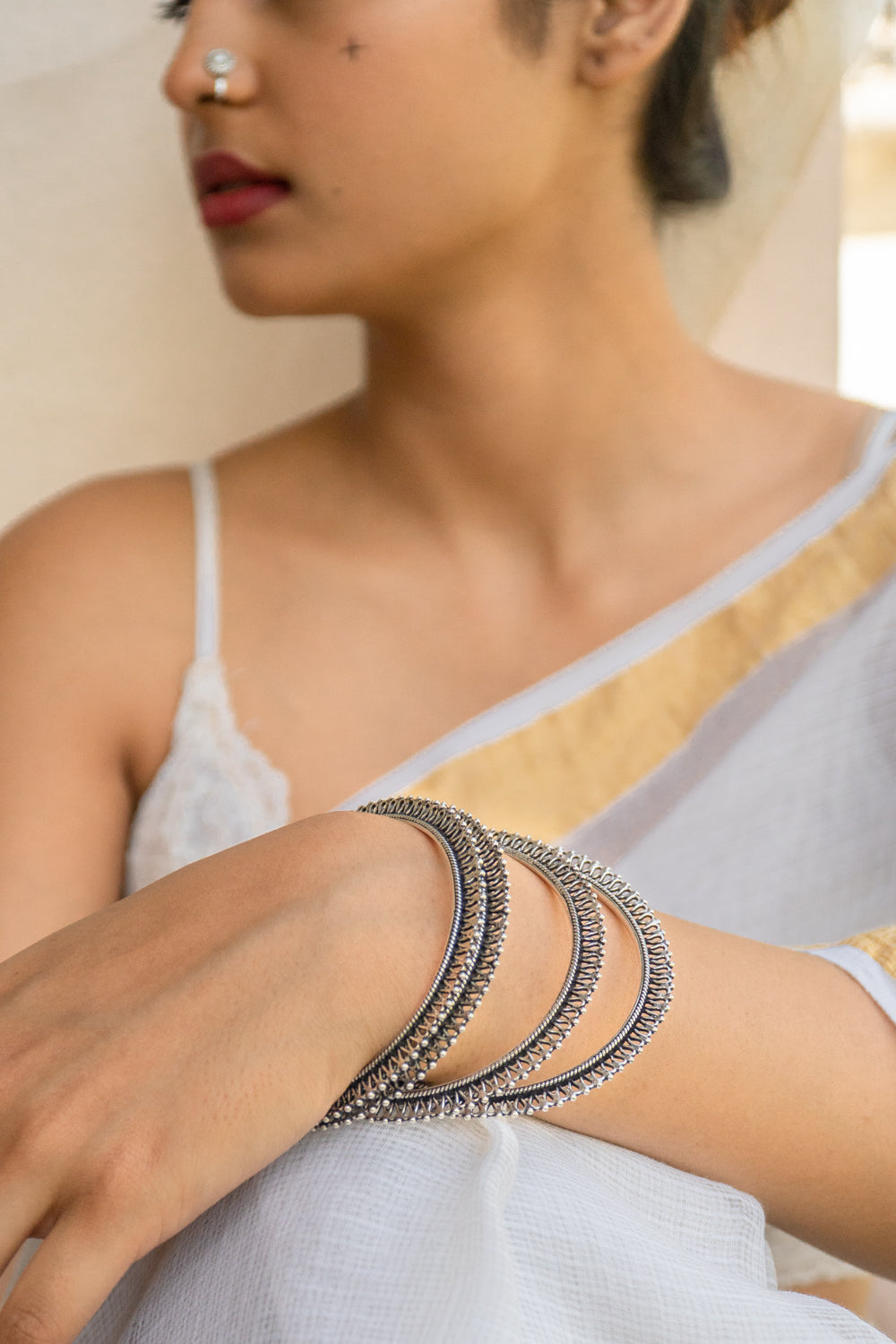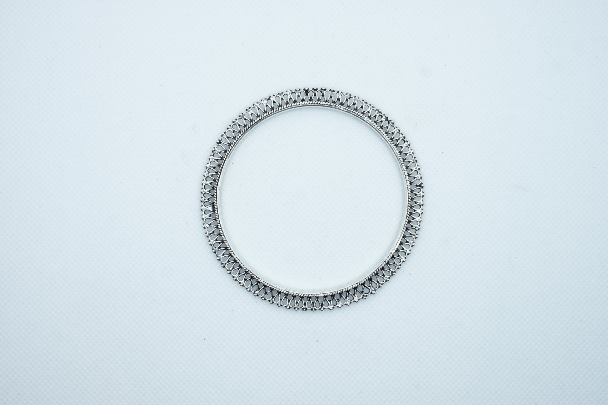 Exposed to the atmosphere, all silver is prone to oxidation and consequent tarnishing. Gentle rubbing with a silver cloth will restore the original brilliance. Do not use liquid cleaners for carved silver jewellery as it dries into the engraving.