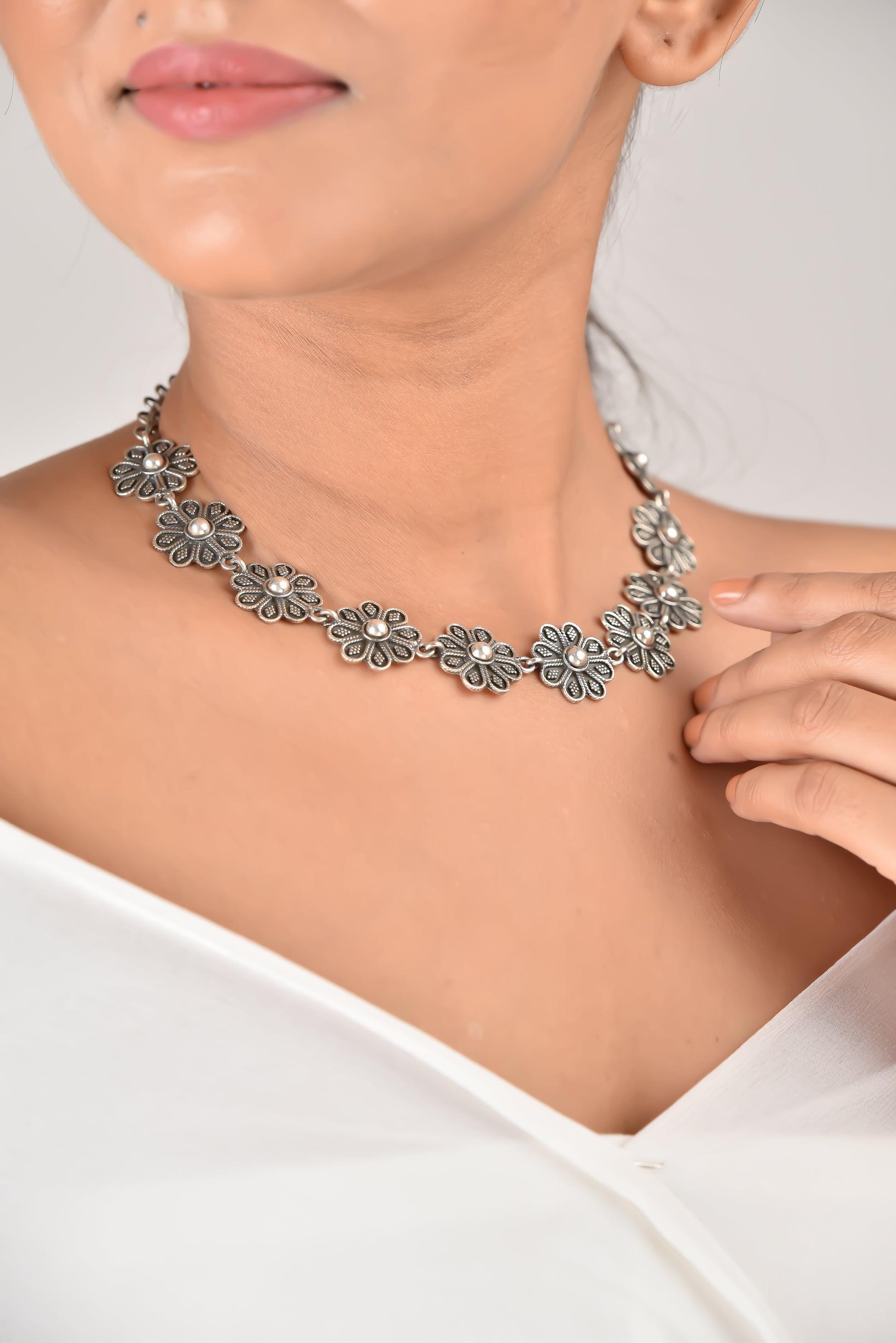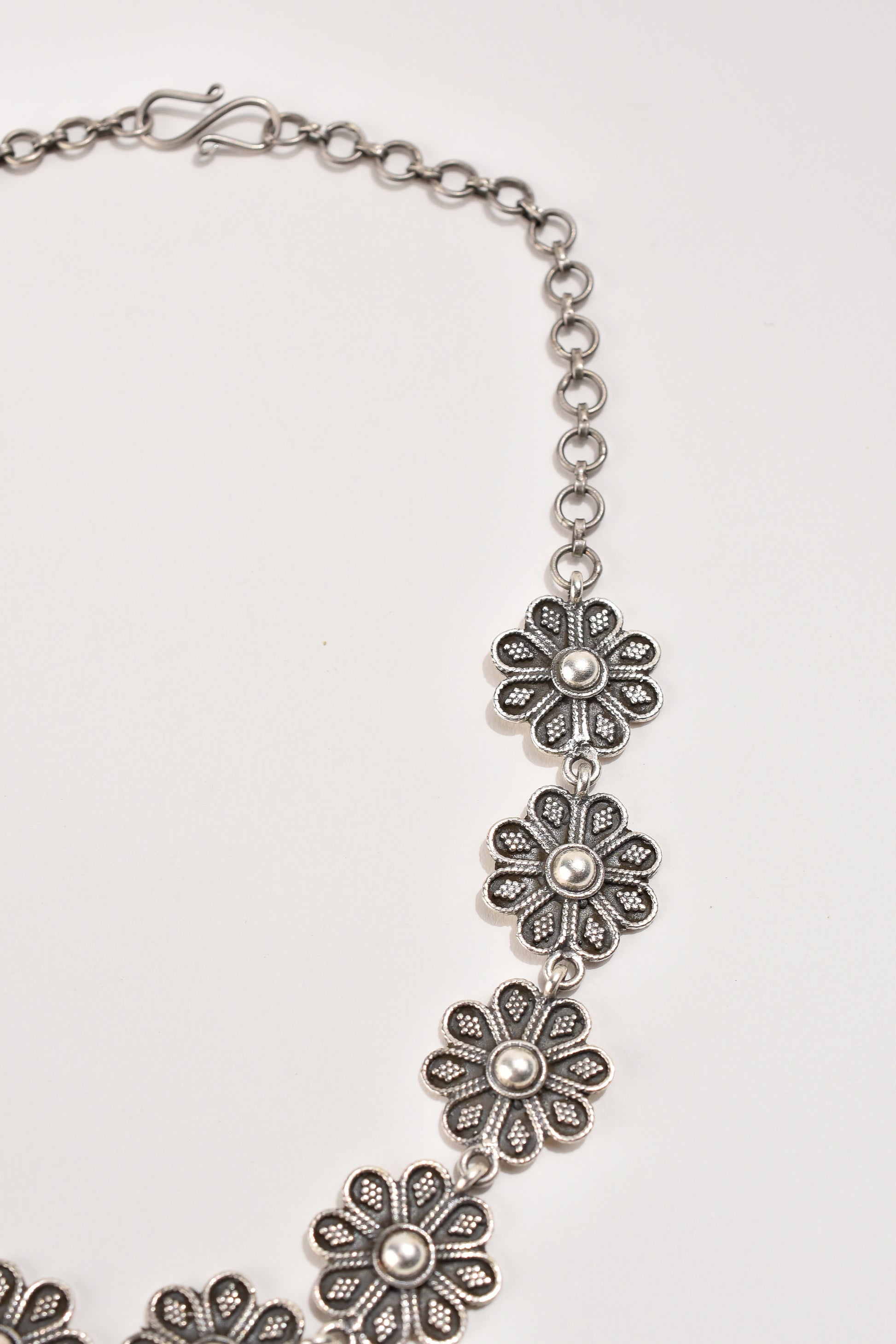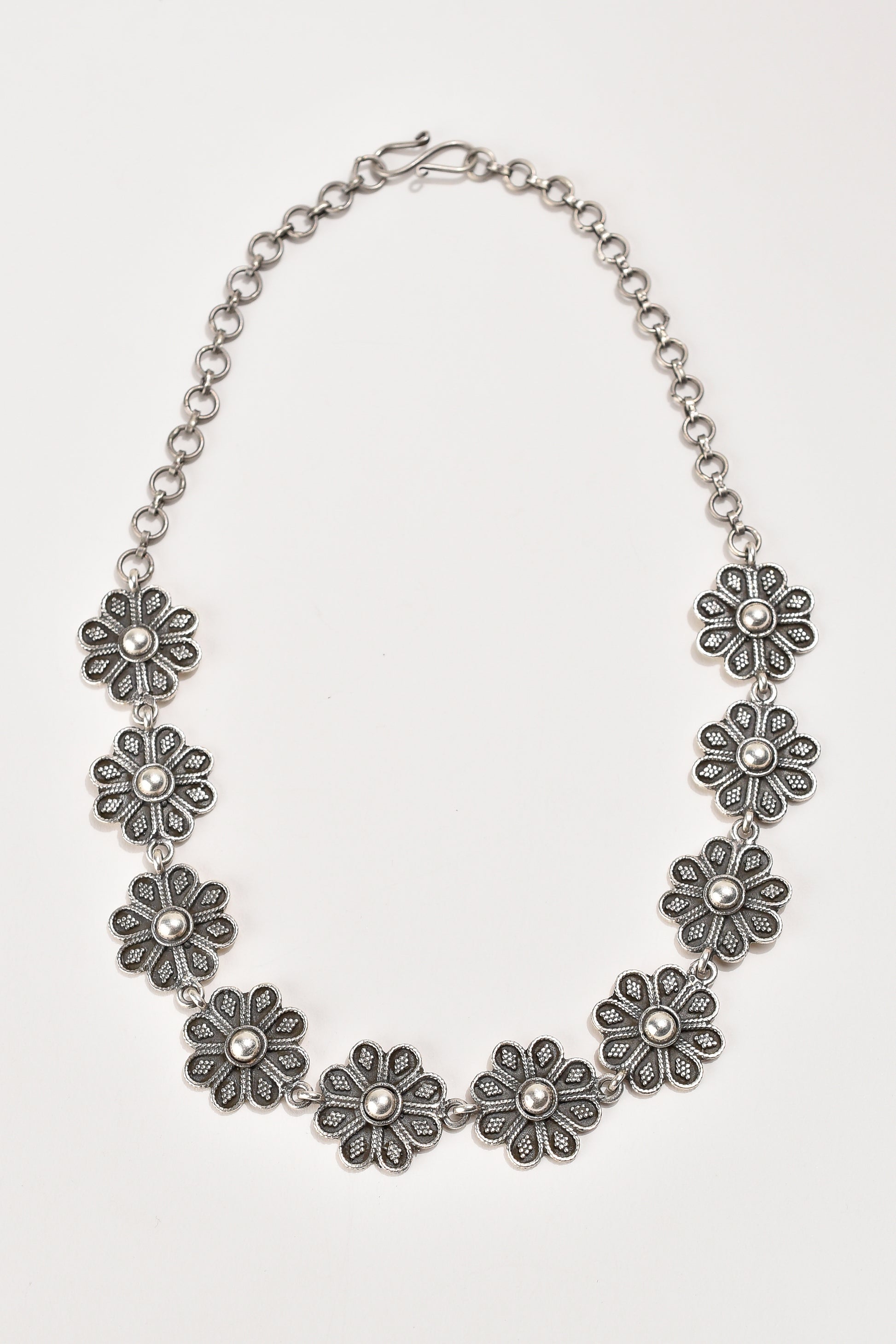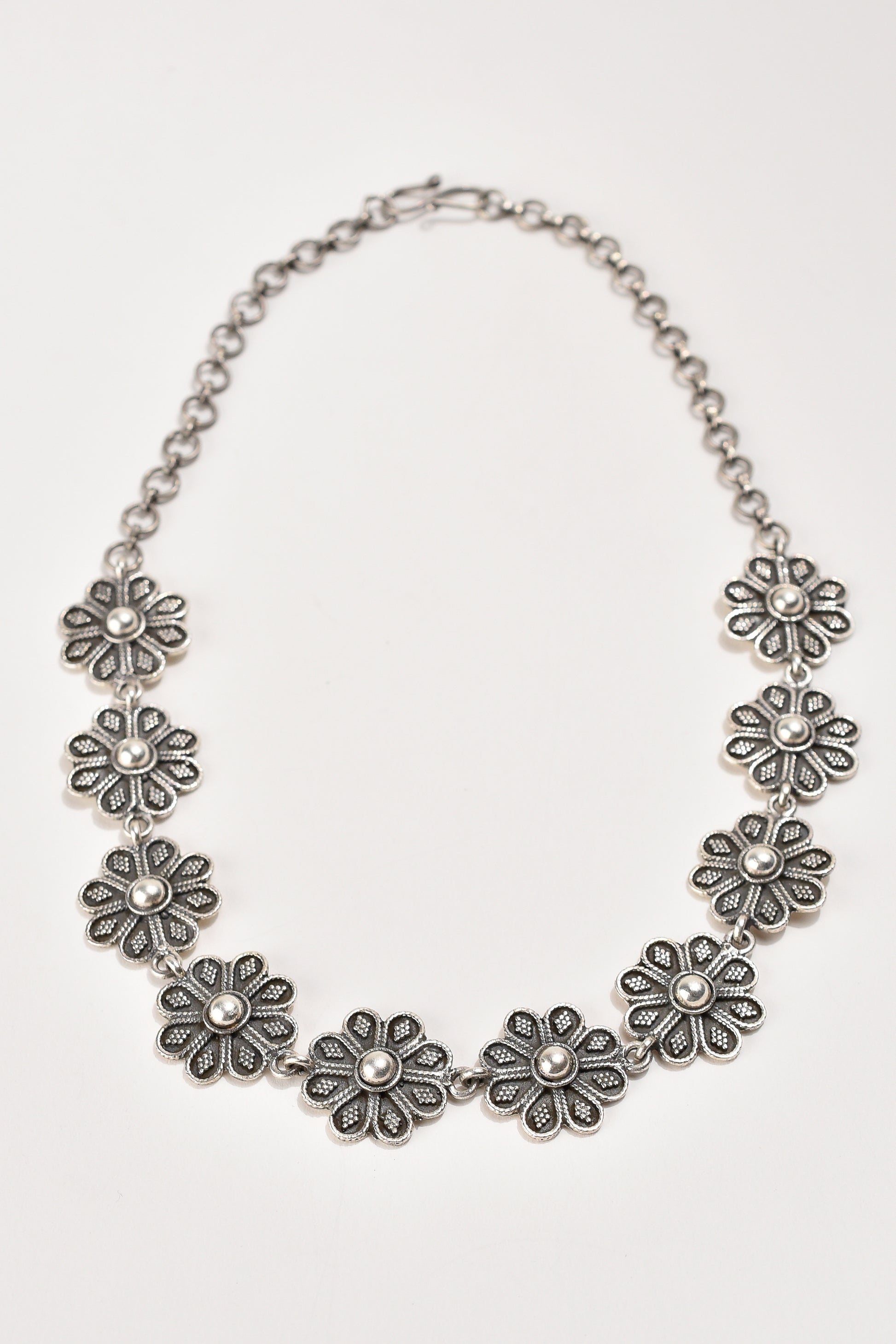 Adjustable granulated flower motif necklace for everyday occasion wear catering to individual comfort and style.