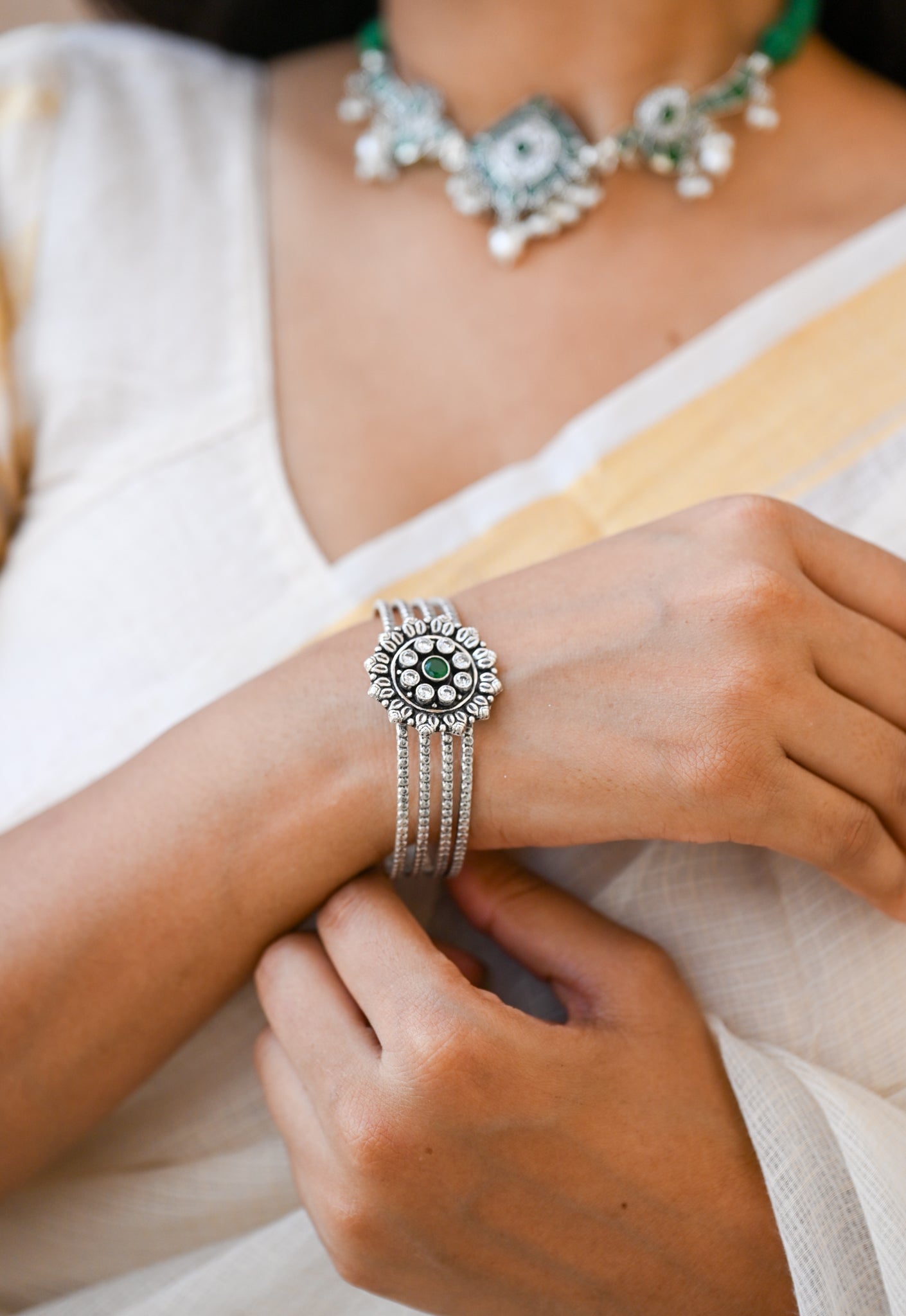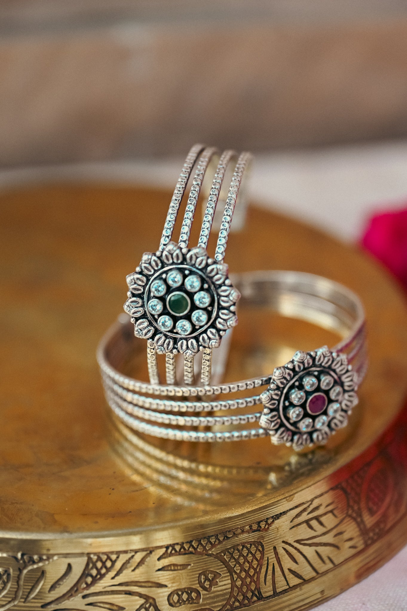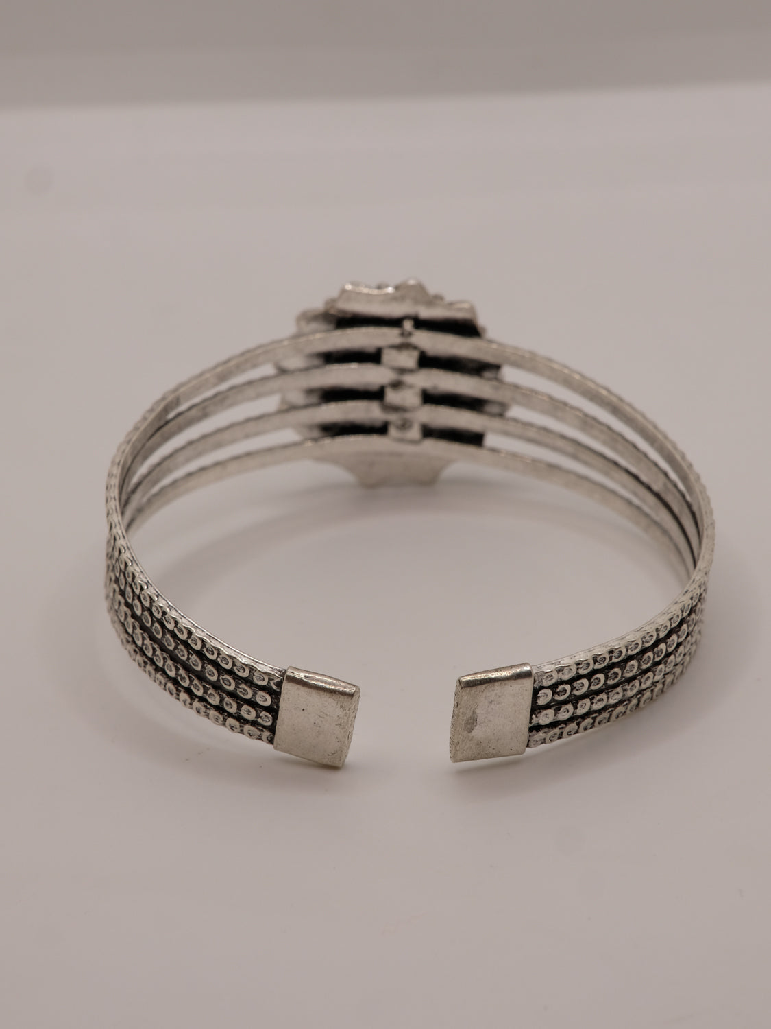 Exposed to the atmosphere, all silver is prone to oxidation and consequent tarnishing. Gentle rubbing with a silver cloth will restore the original brilliance. Do not use liquid cleaners for carved silver jewelry as it dries into the engraving.