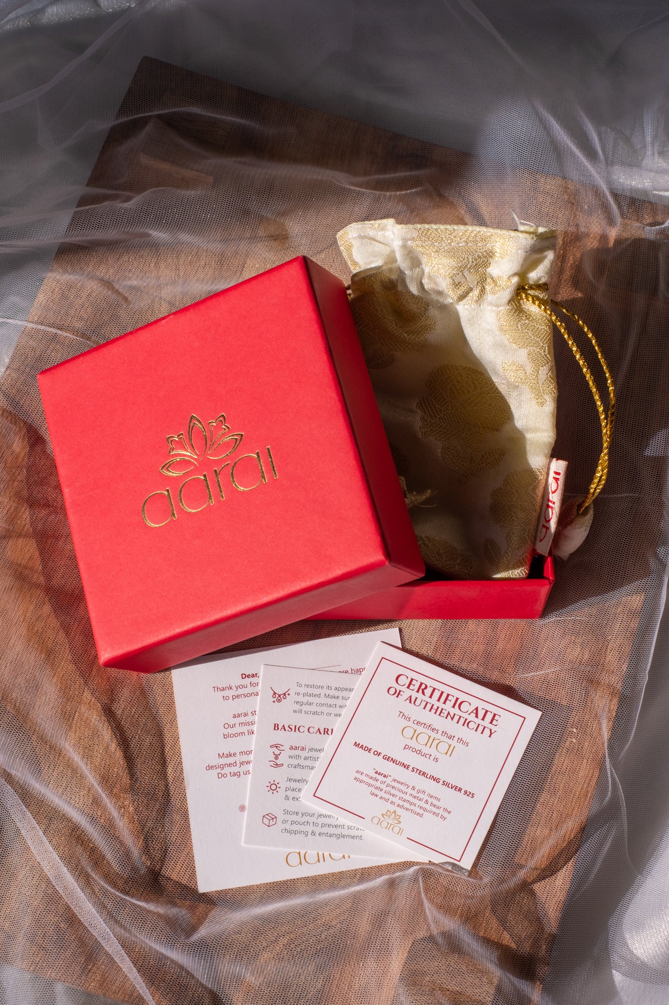 Exposed to the atmosphere, all silver is prone to oxidation and consequent tarnishing. Gentle rubbing with a silver cloth will restore the original brilliance. Do not use liquid cleaners for carved silver jewellery as it dries into the engraving.