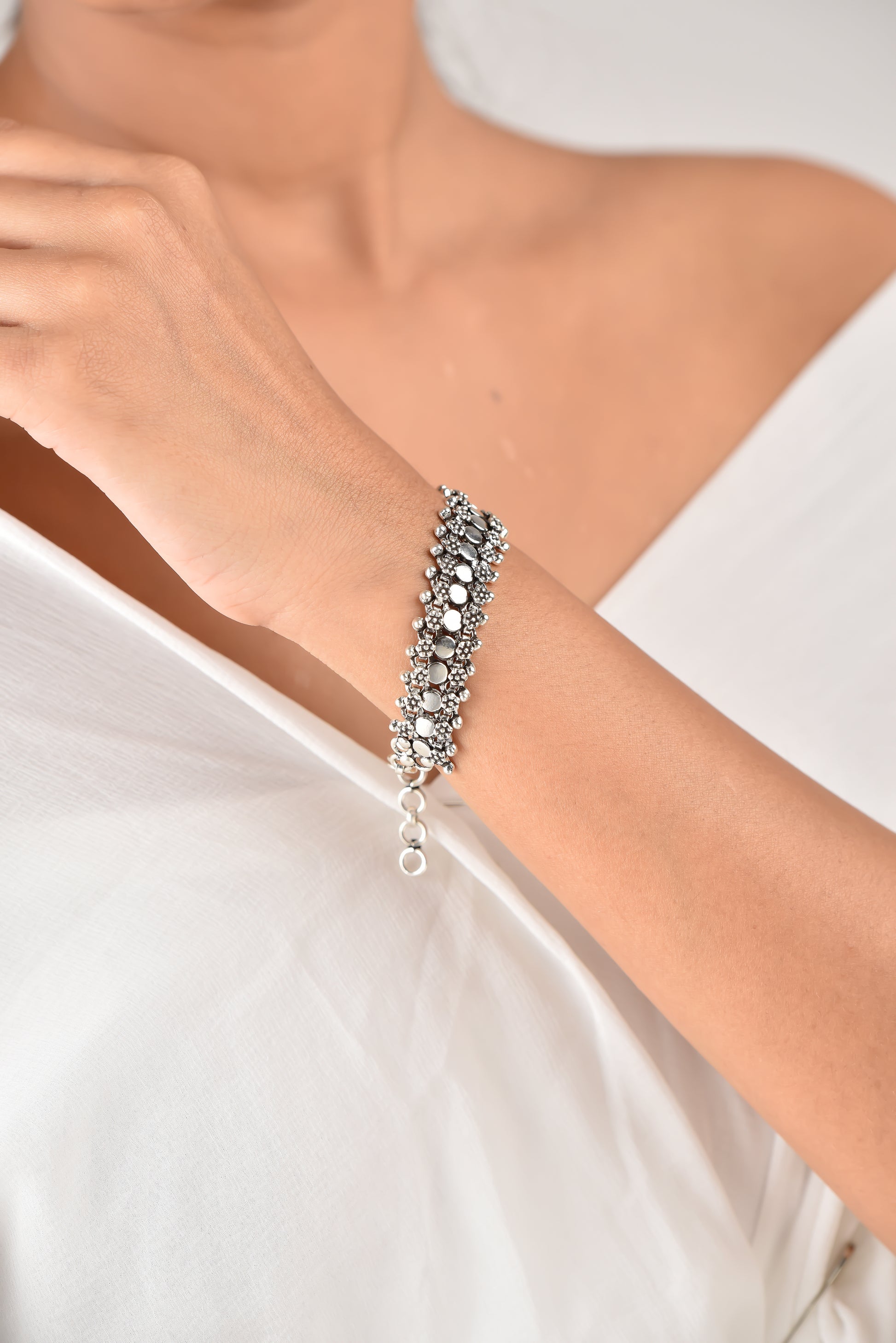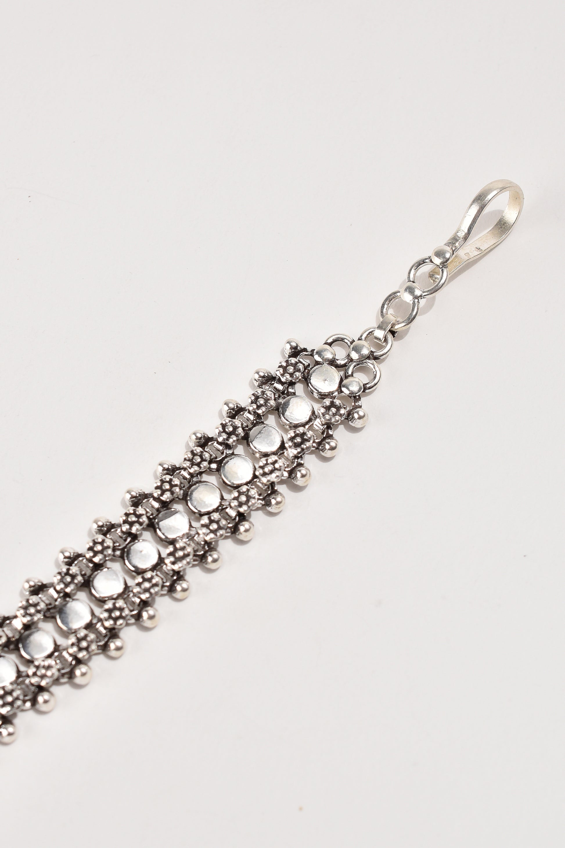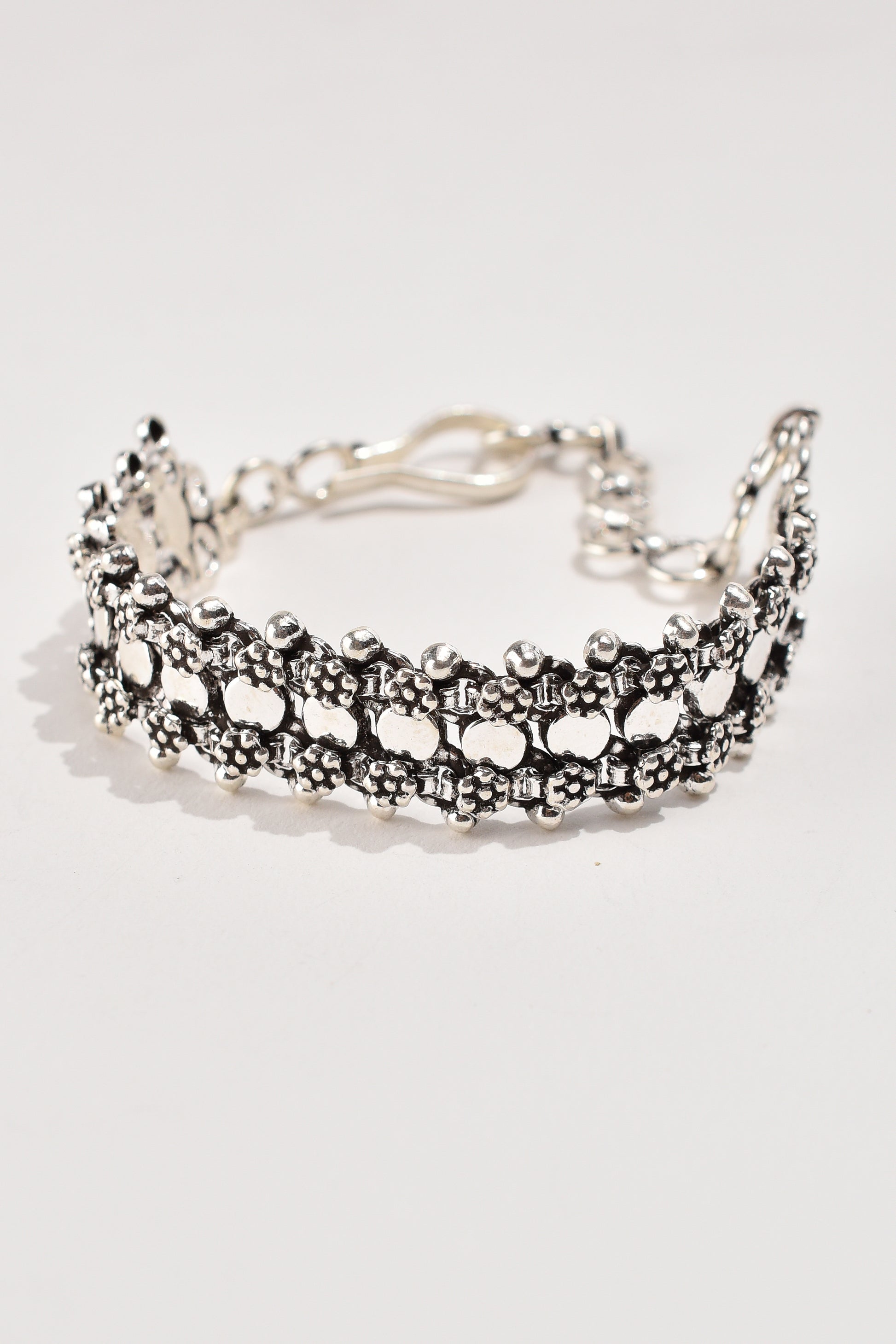 Exposed to the atmosphere, all silver is prone to oxidation and consequent tarnishing. Gentle rubbing with a silver cloth will restore the original brilliance. Do not use liquid cleaners for carved silver jewelry as it dries into the engraving.