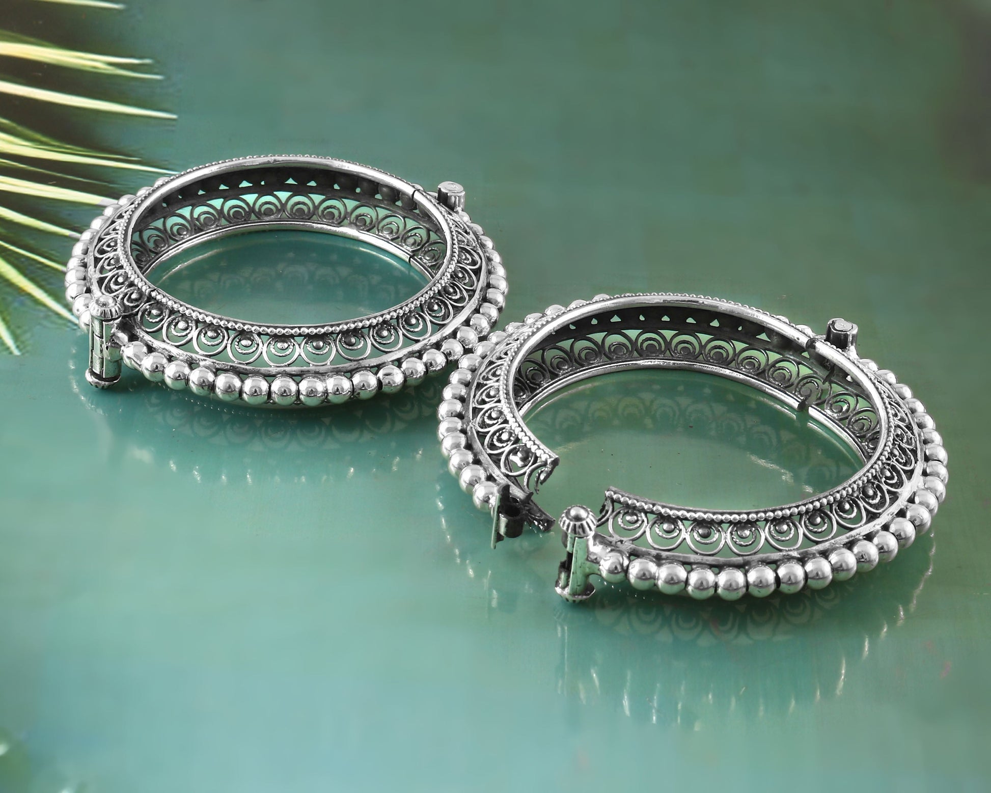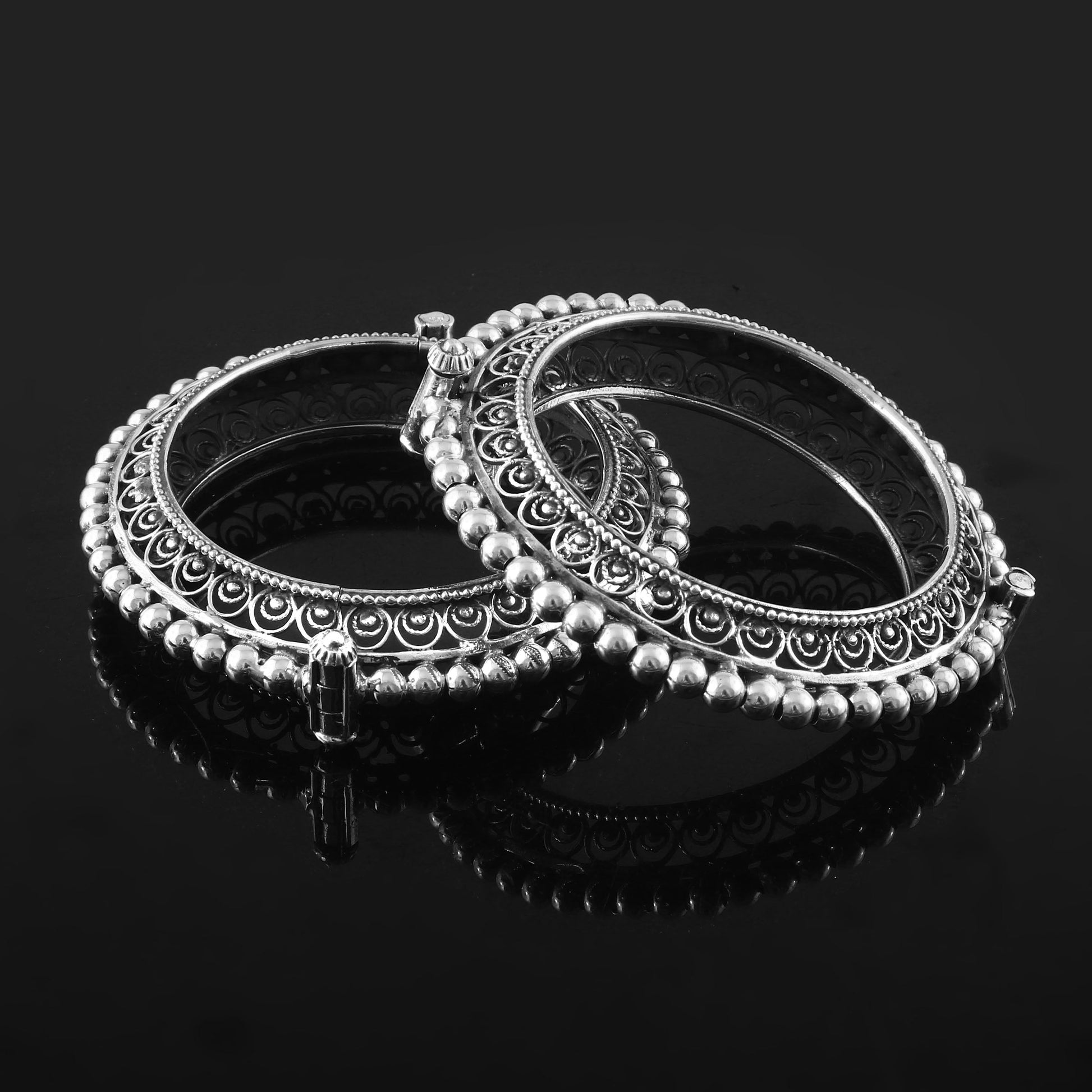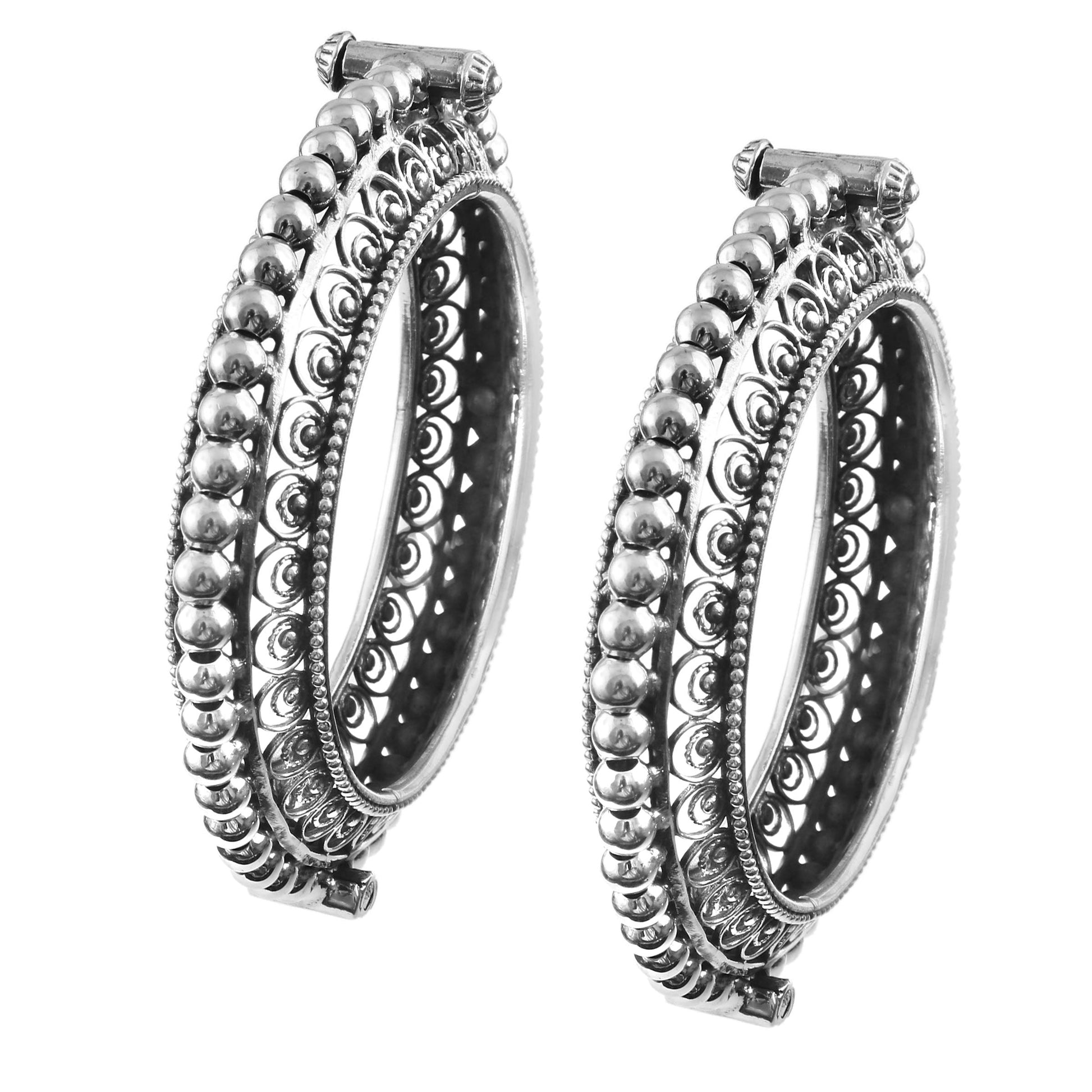 Openable silver bangle with jali work and ball granulated design to elevate your occasion look.
