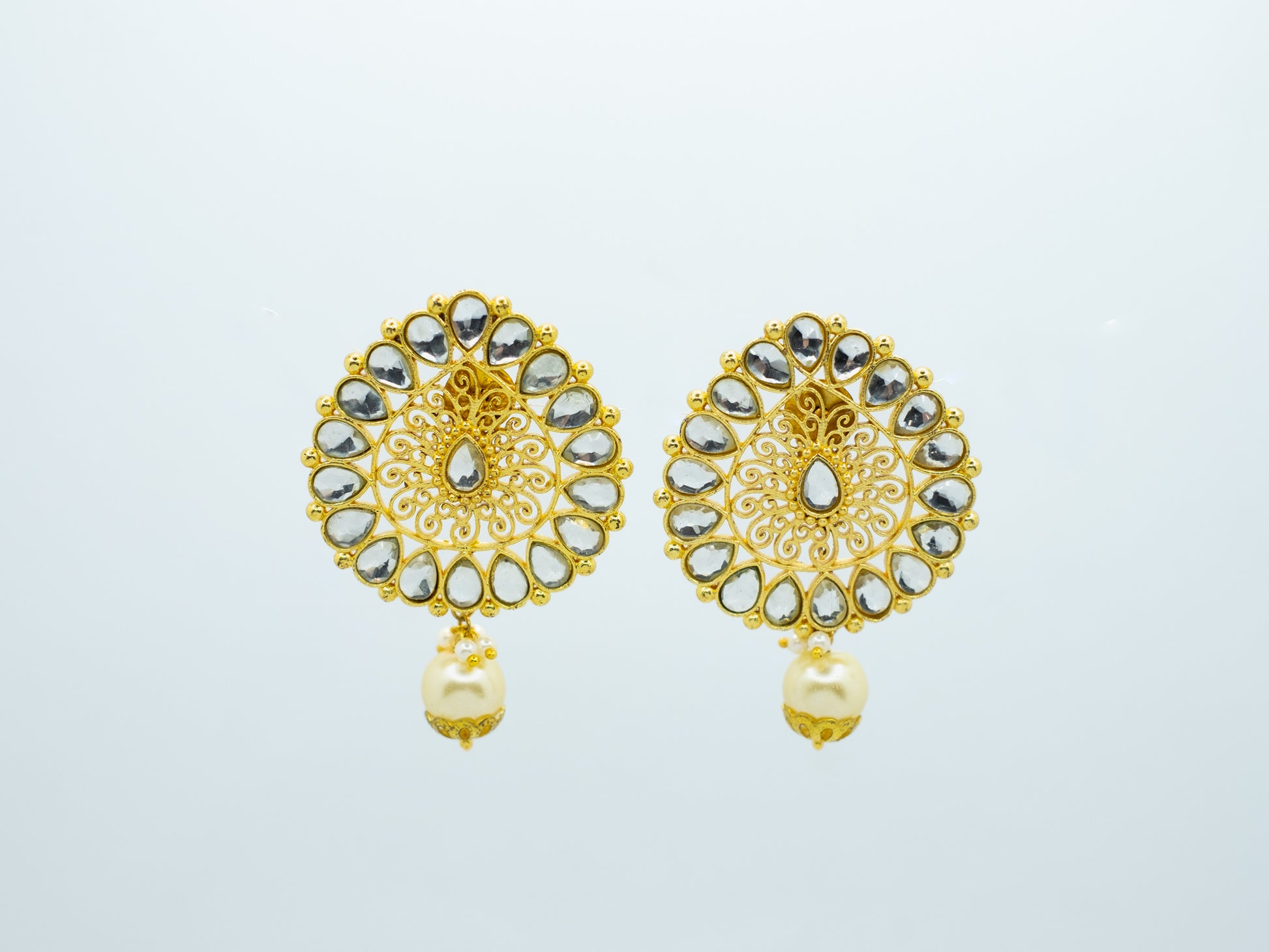 Versatile Paan shapes Metal Base Zircon Studded Pearl hanging Earrings.