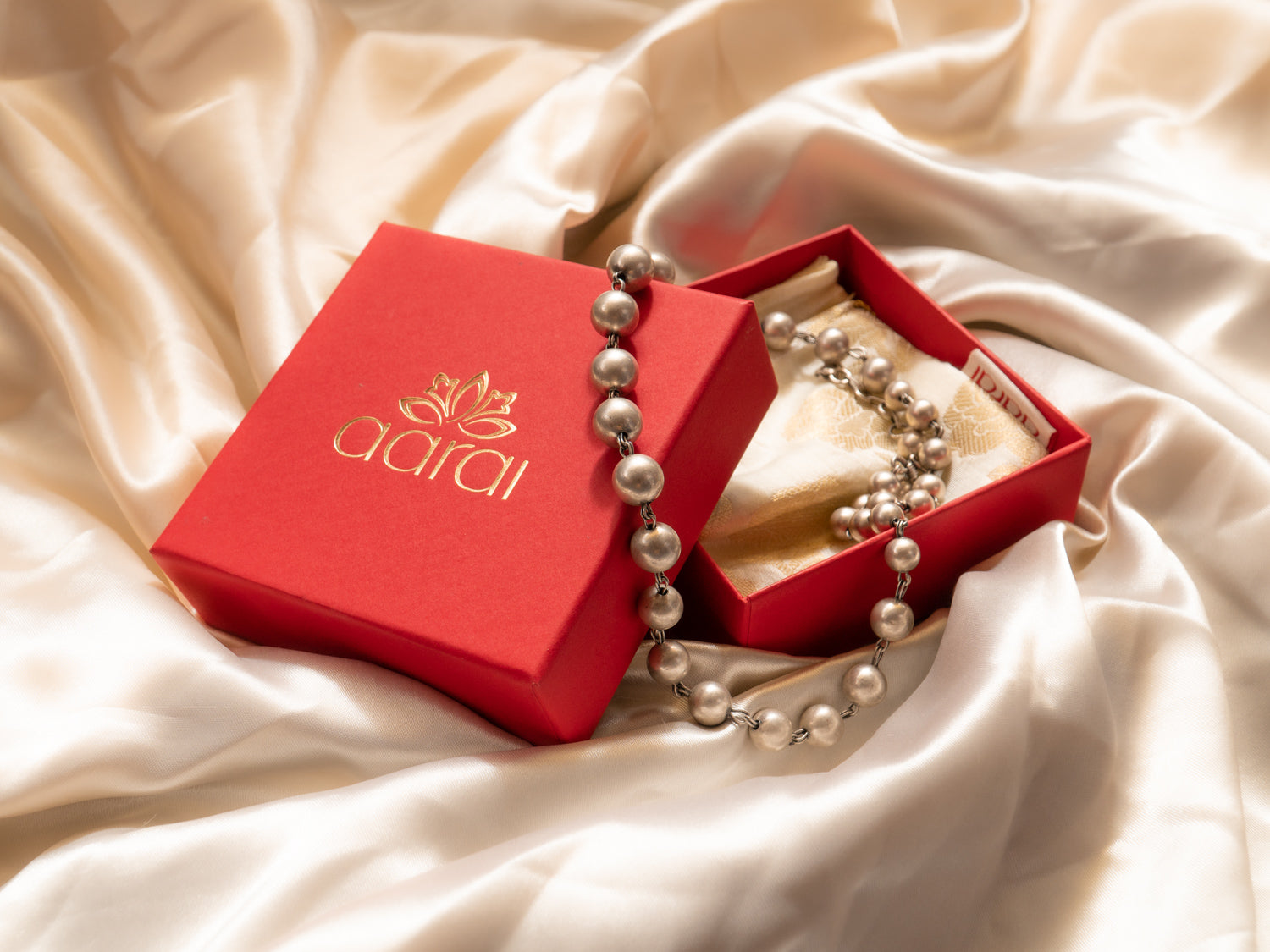 Exposed to the atmosphere, all silver is prone to oxidation and consequent tarnishing. Gentle rubbing with a silver cloth will restore the original brilliance. Do not use liquid cleaners for carved silver jewellery as it dries into the engraving.