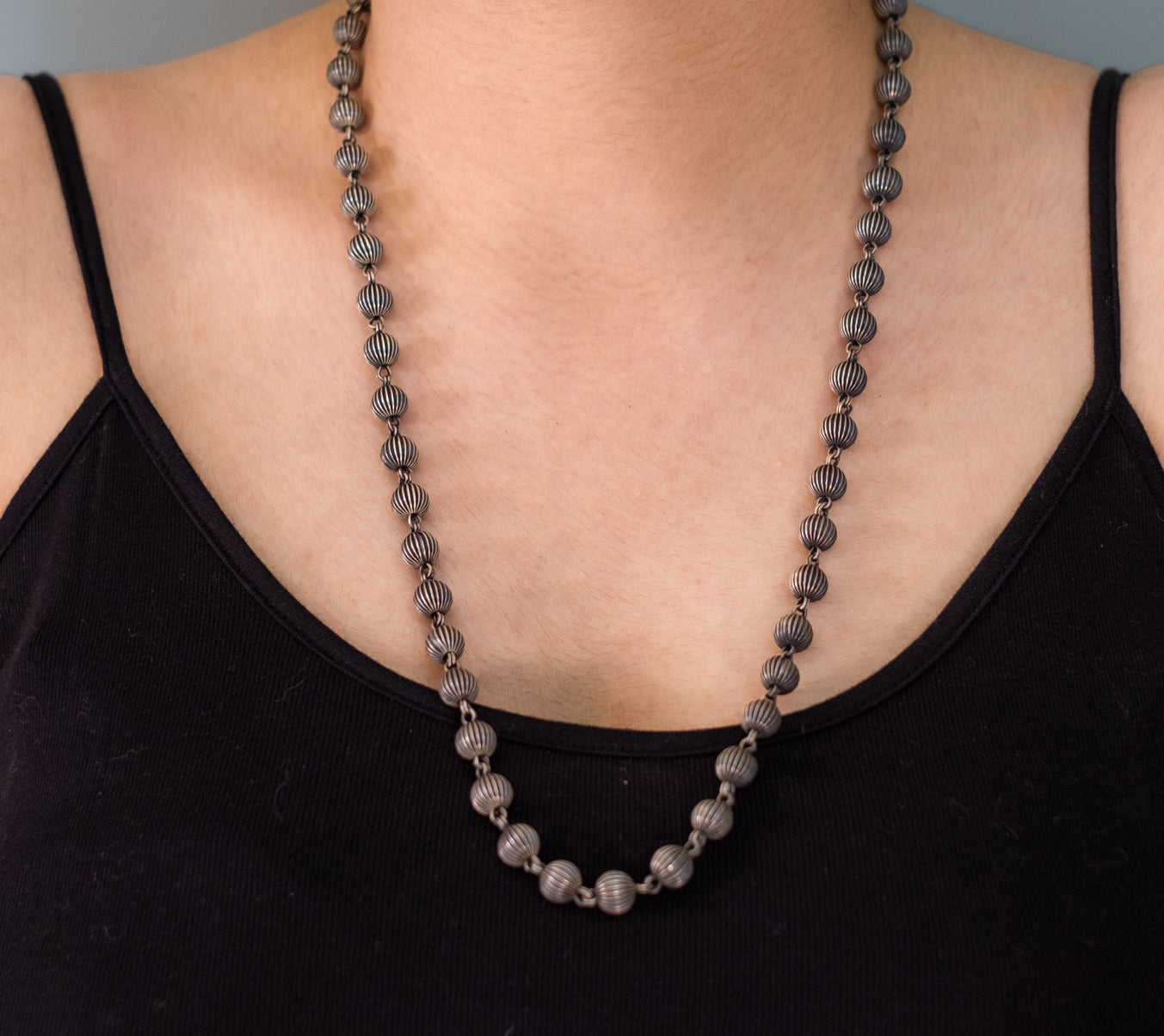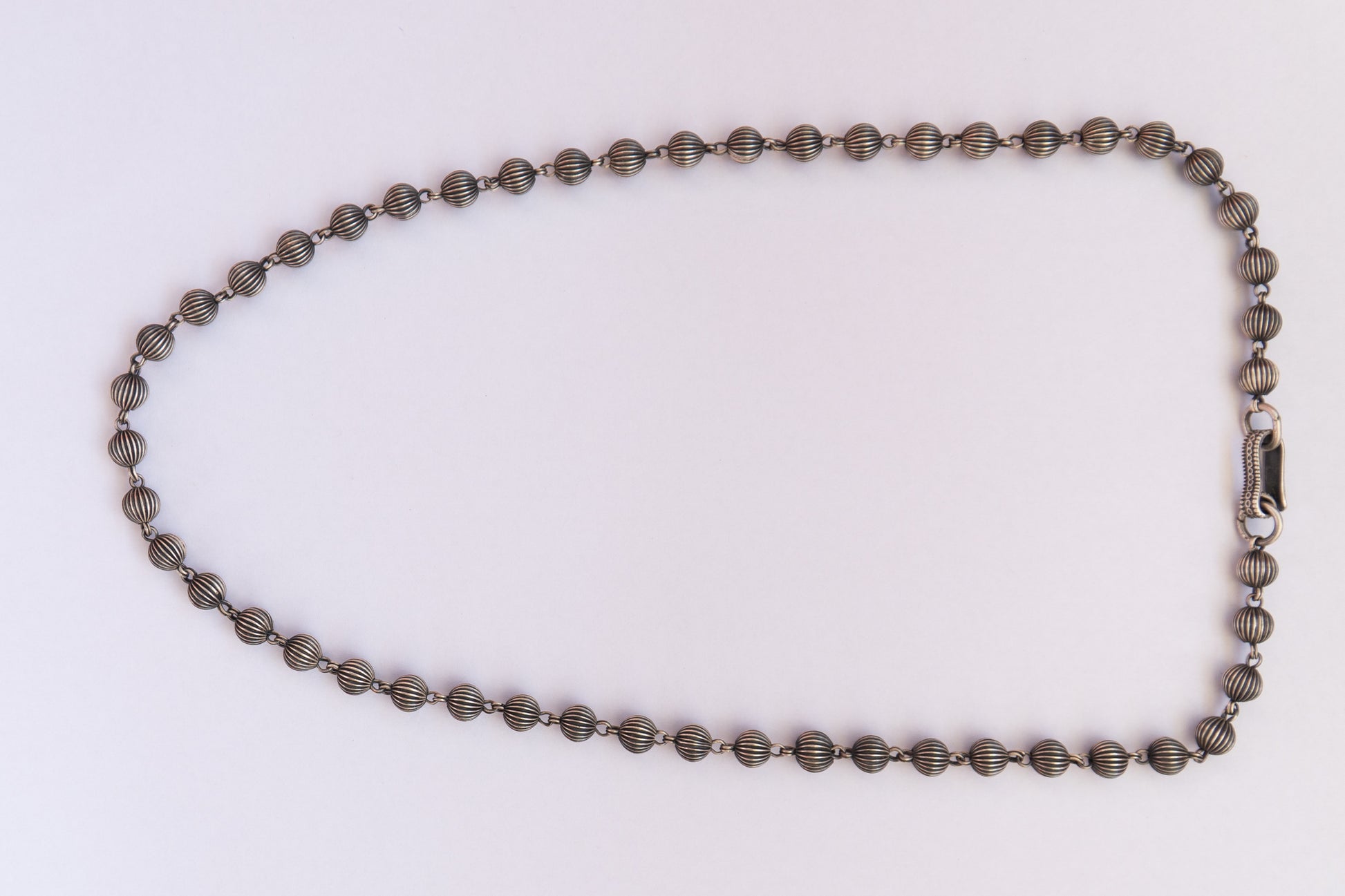 Exposed to the atmosphere, all silver is prone to oxidation and consequent tarnishing. Gentle rubbing with a silver cloth will restore the original brilliance. Do not use liquid cleaners for carved silver jewellery as it dries into the engraving.