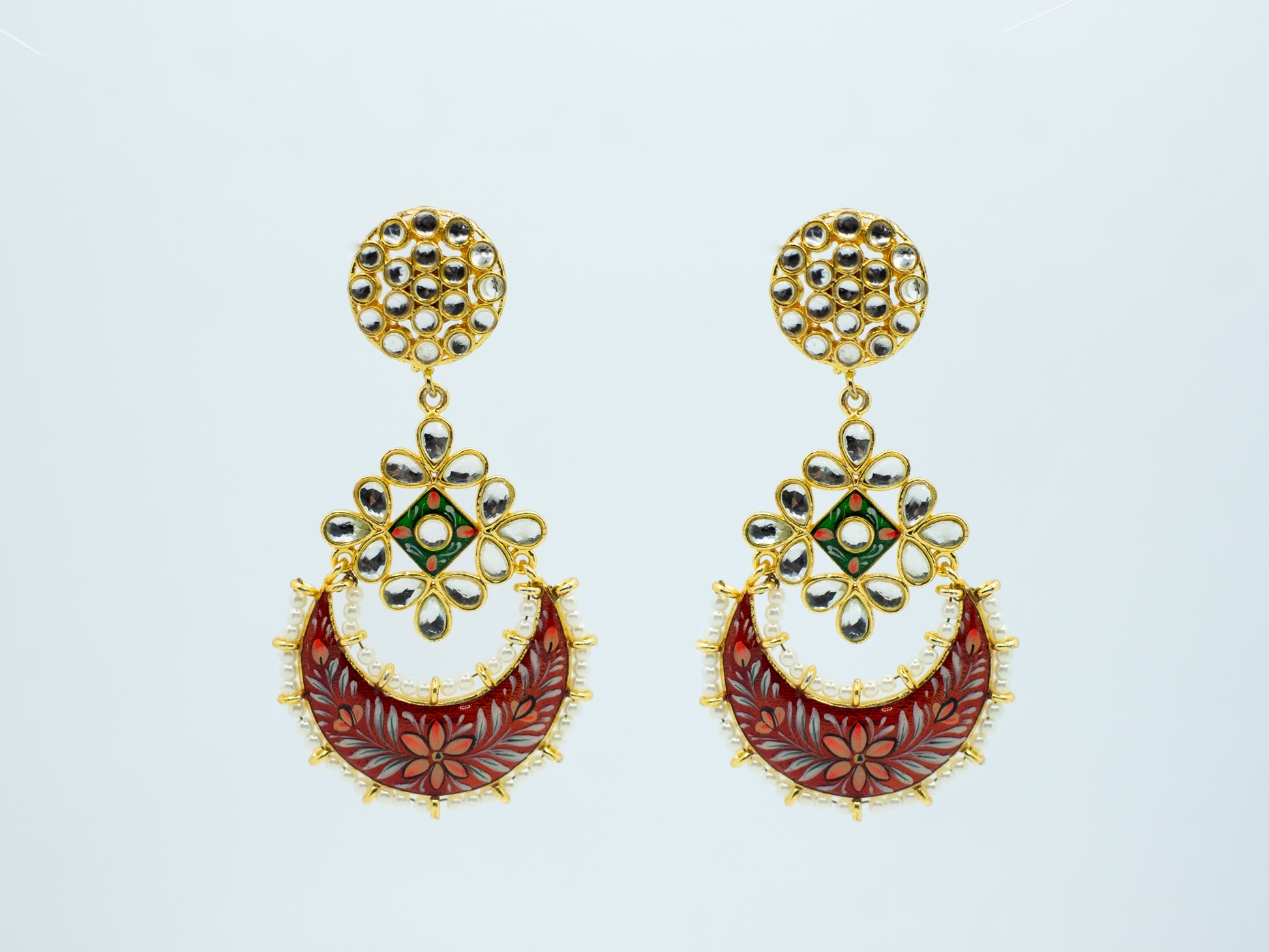 Zircon Studded Pearl Enamel Chandbali Earrings -NOOR